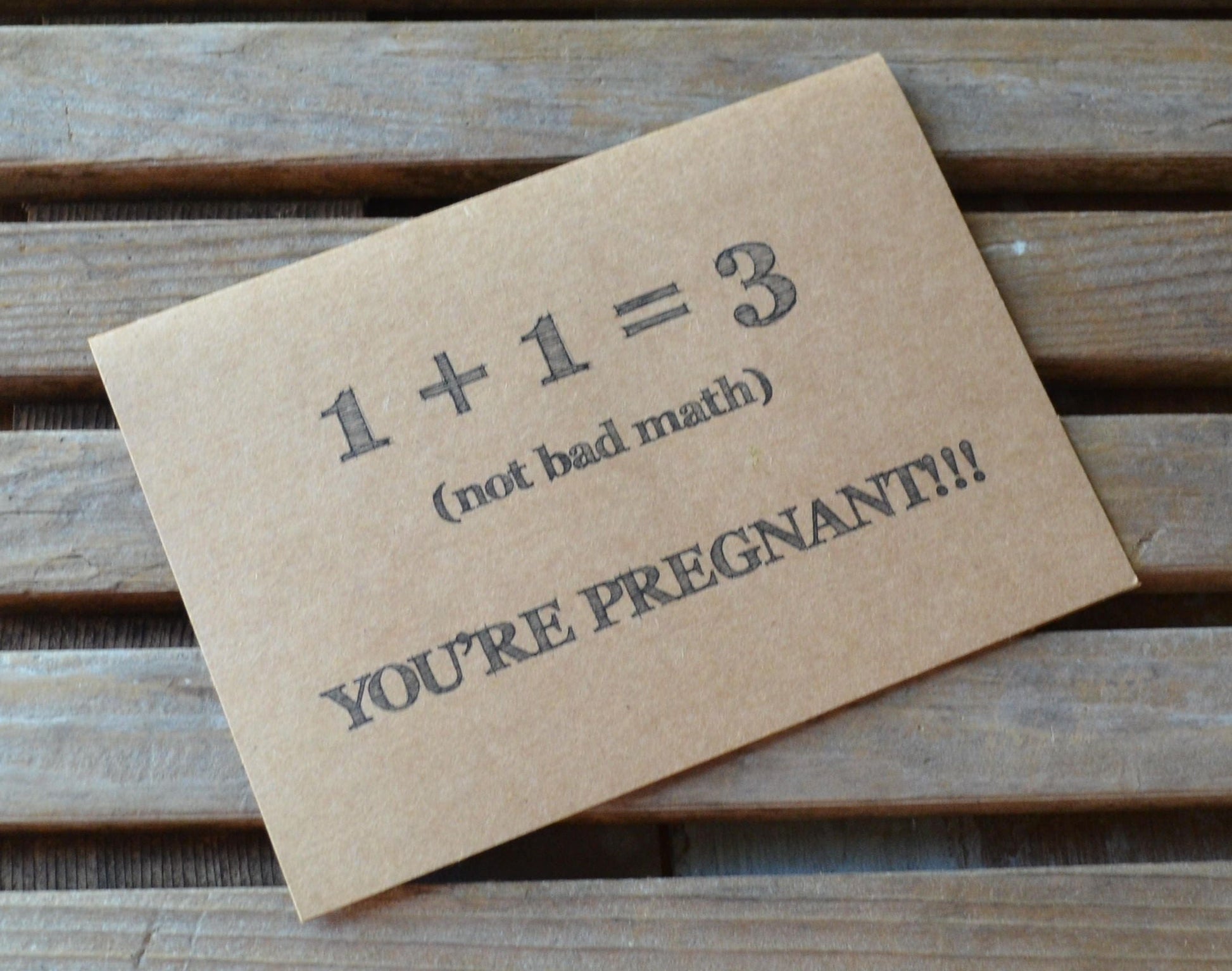 1 PLUS 1 equals 3 you're pregnant | new baby card | expecting parents