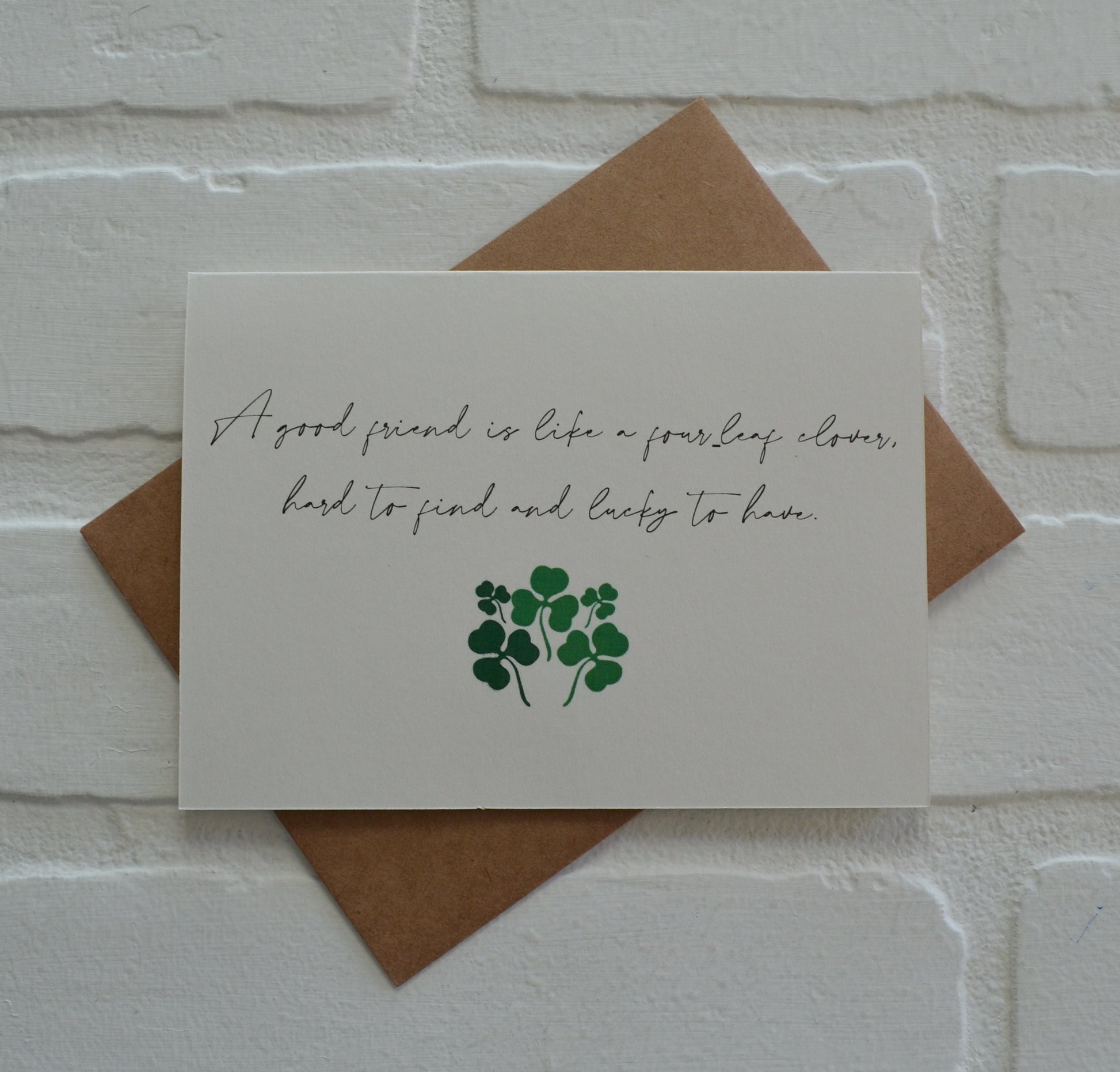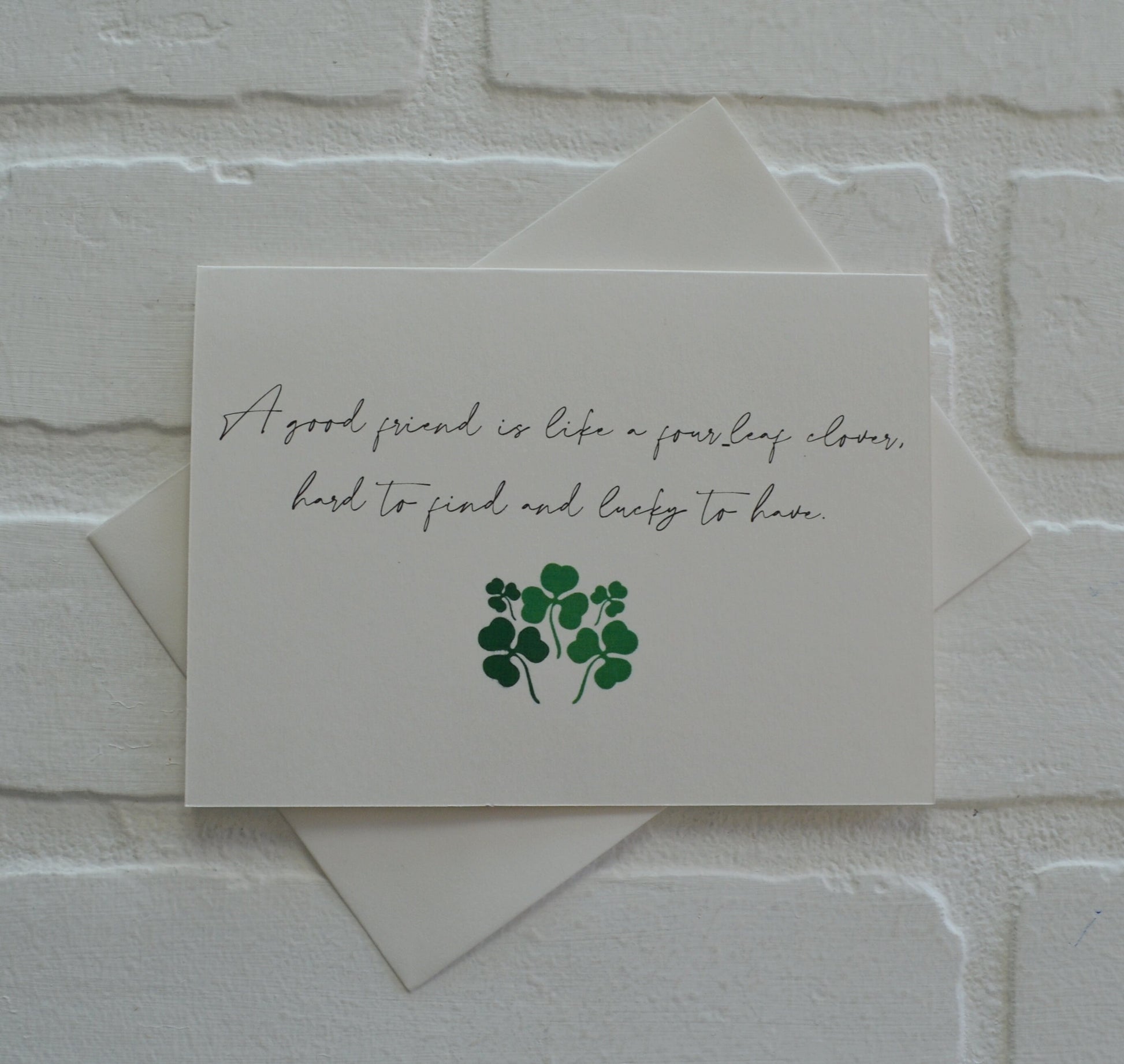 A GOOD FRIEND is like a four leaf clover hard to find and lucky to have | Happy St. Patrick's Day greeting cards