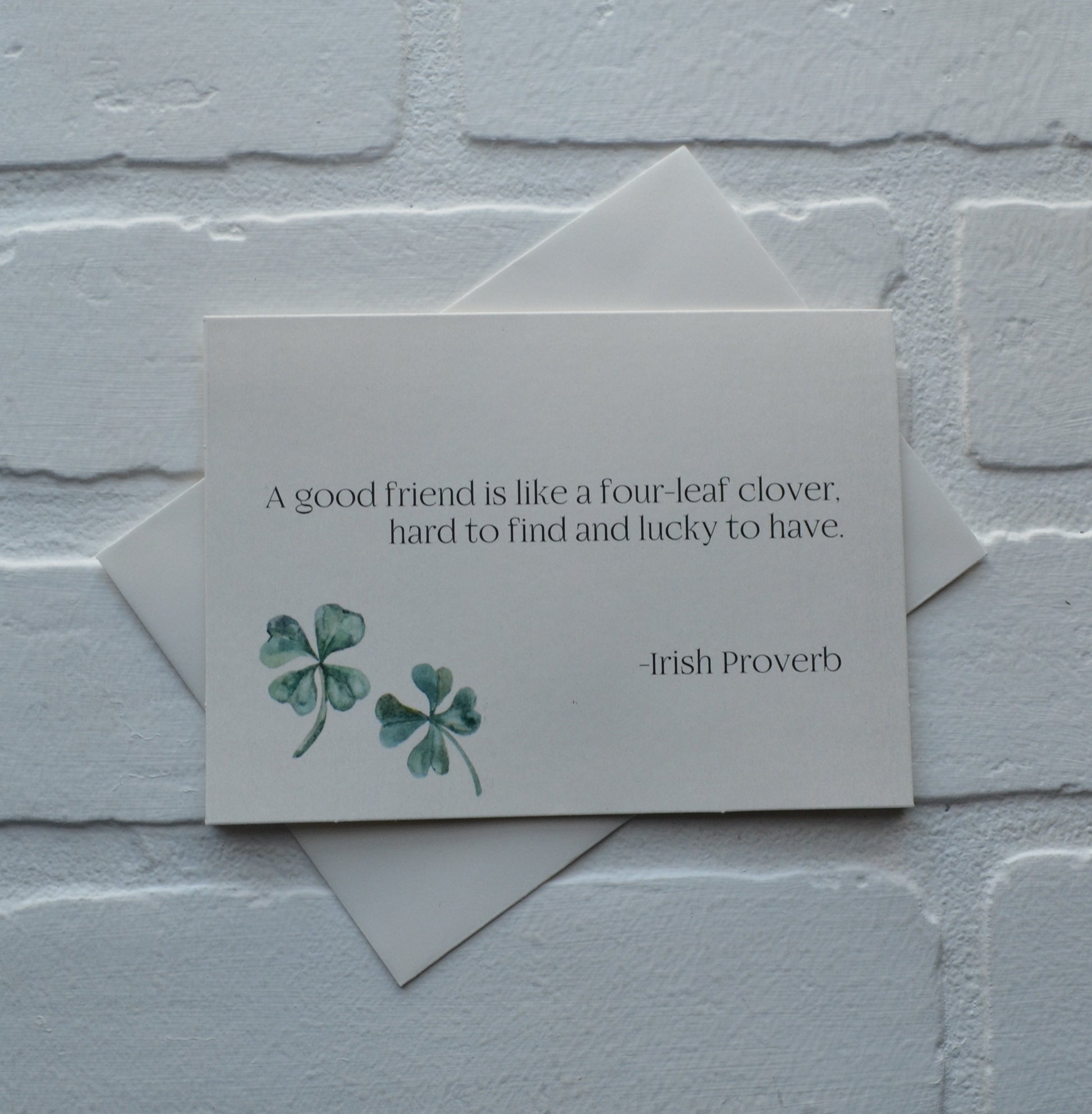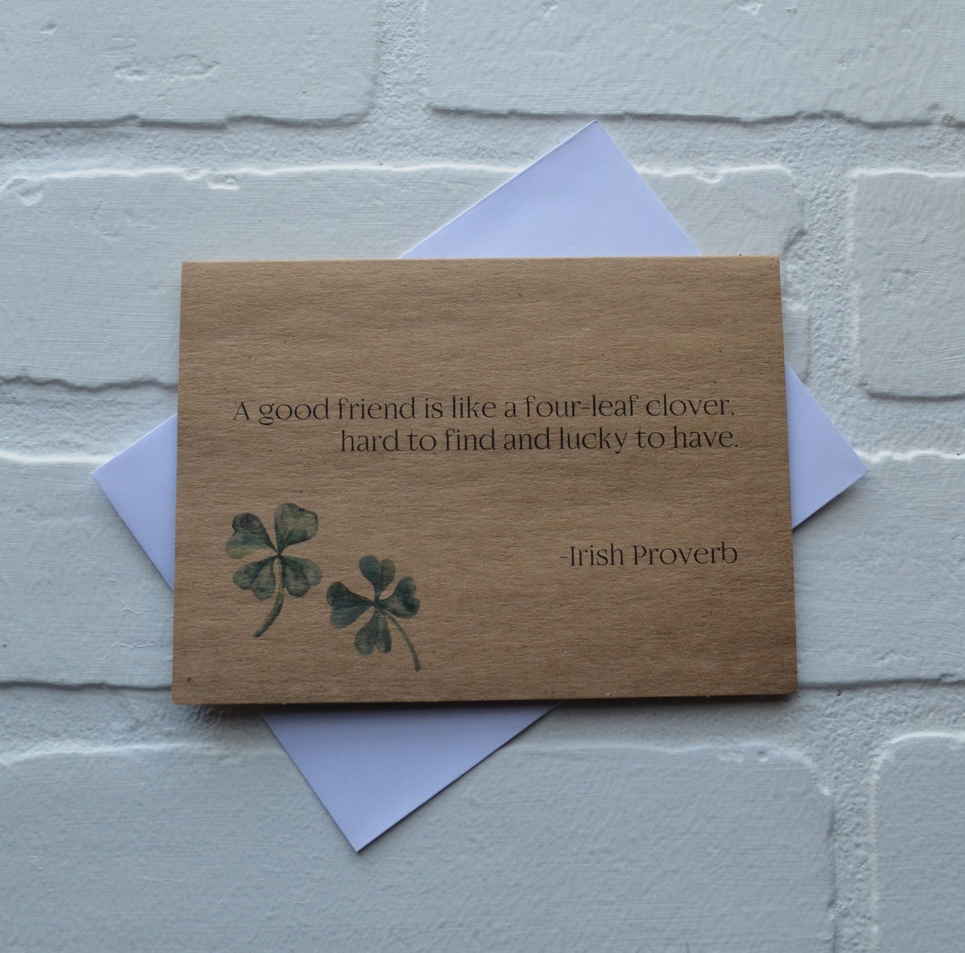 (Outside) "A good friend is like a four-leaf clover, hard to find and lucky to have. -Irish Proverb"