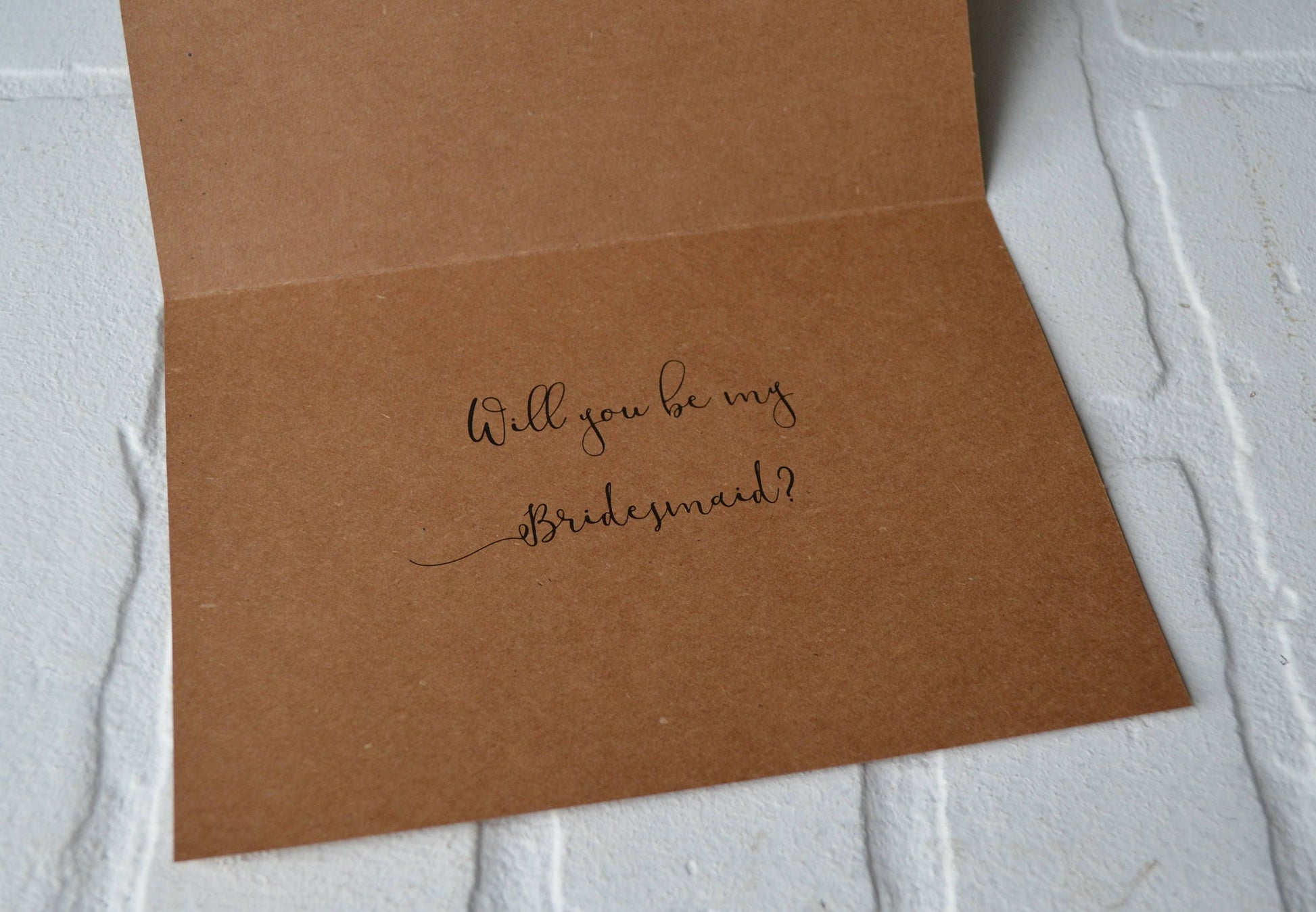 (Inside)"Will you be my (Bridesmaid, Maid of honor, Matron of honor, Junior bridesmaid, Personal attendant OR Flower girl)?"