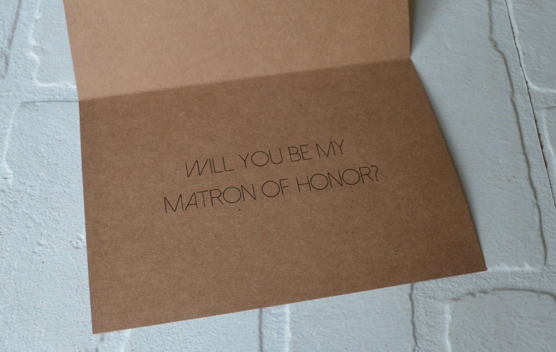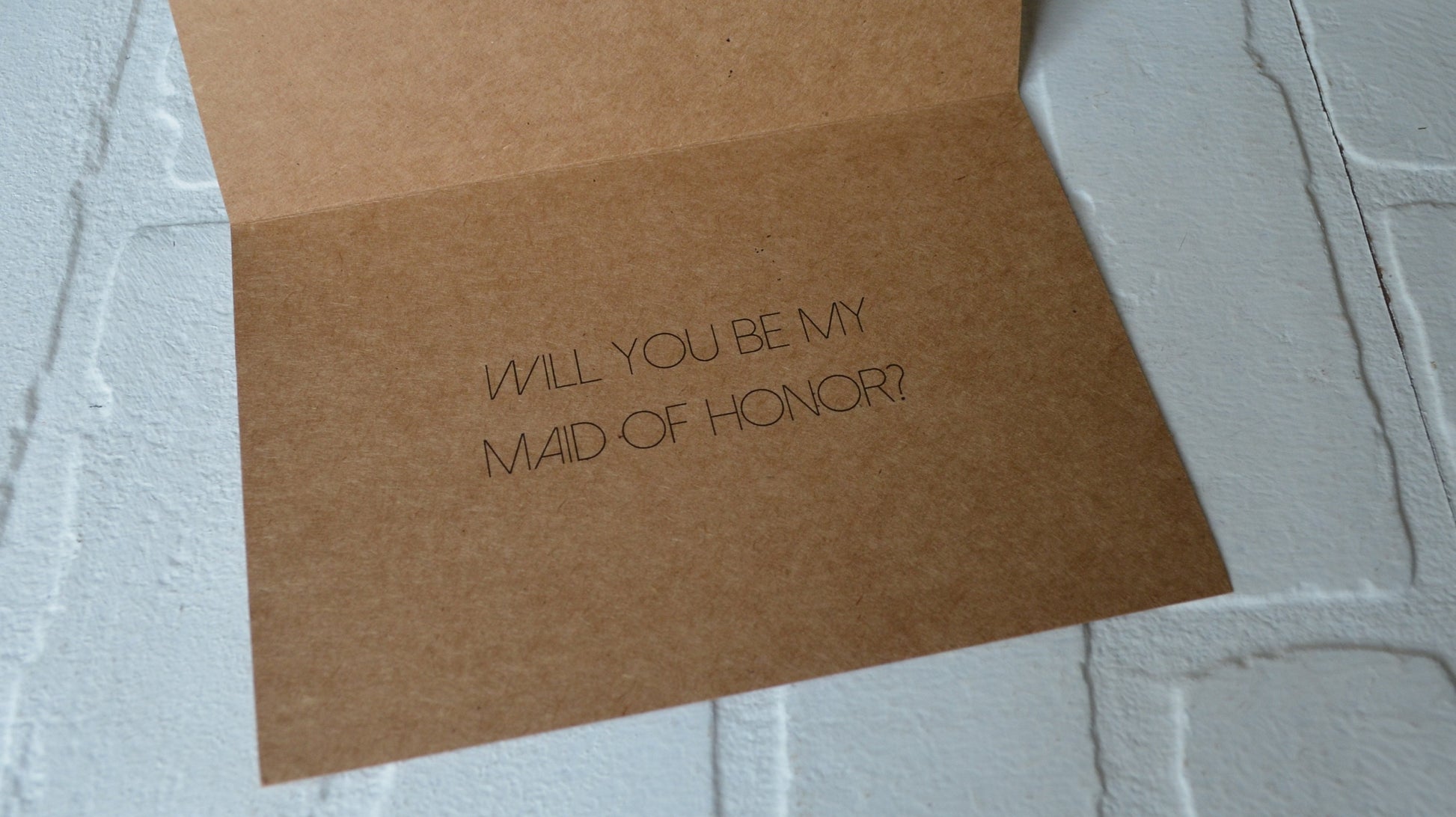(Inside) "WILL YOU BE MY (BRIDESMAID, MAID OF HONOR, MATRON OF HONOR, JUNIOR BRIDESMAID OR PERSONAL ATTENDANT)?"