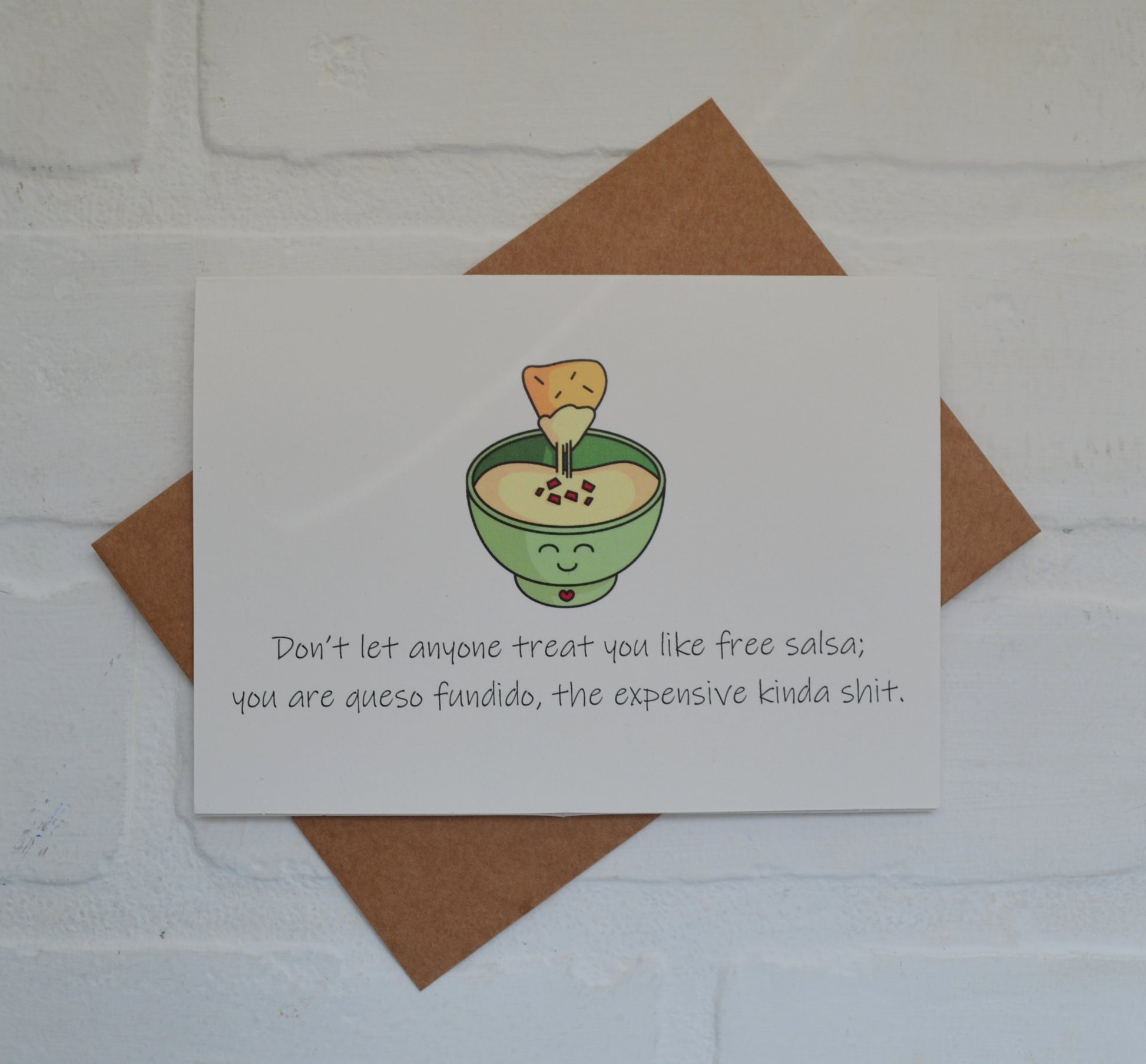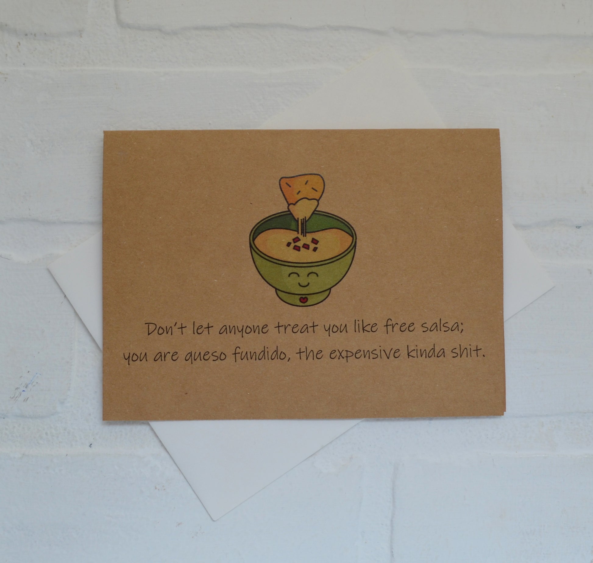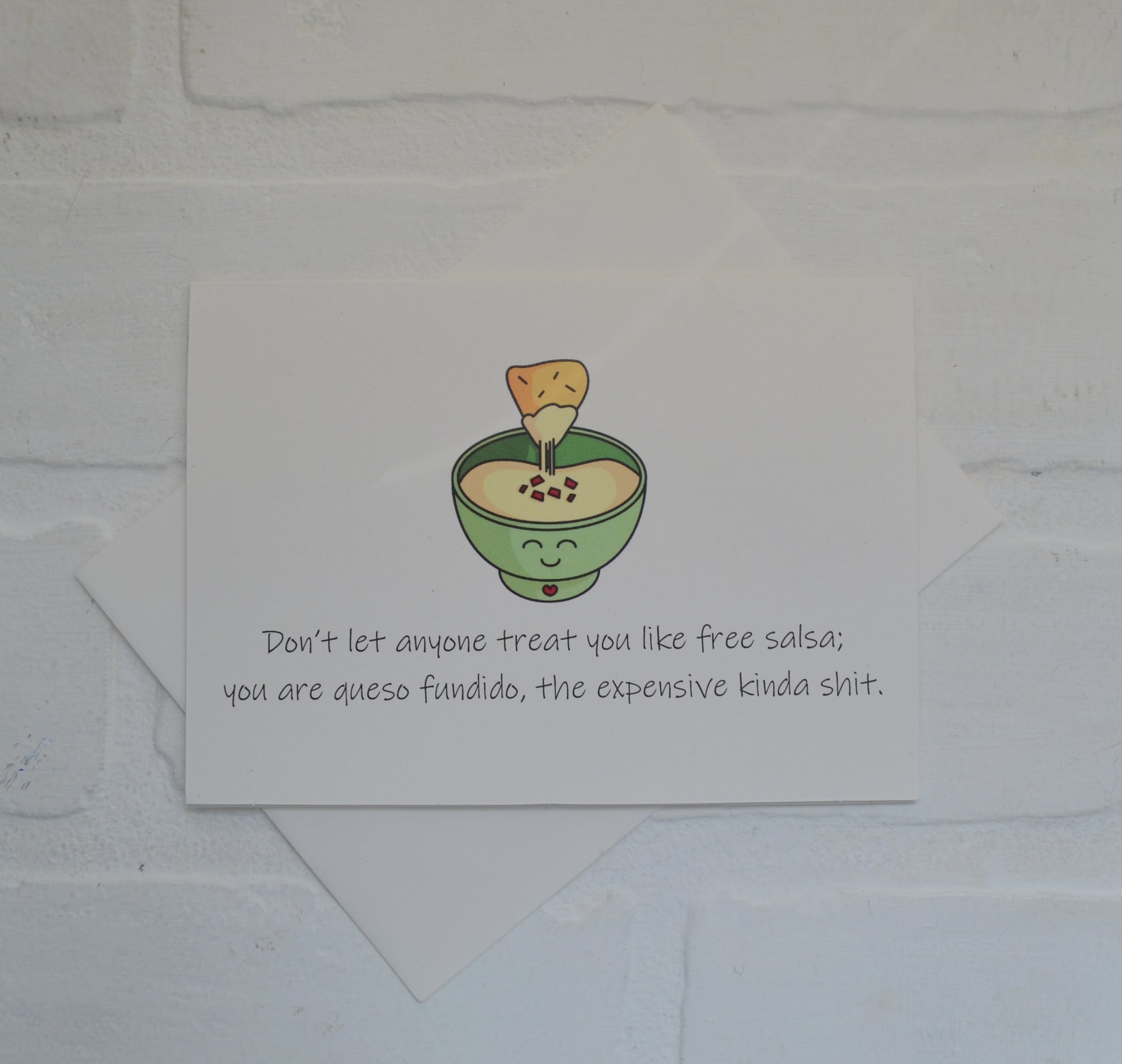 (Outside) "Don't let anyone treat you like free salsa; you are queso fundido, the expensive kinda shit."