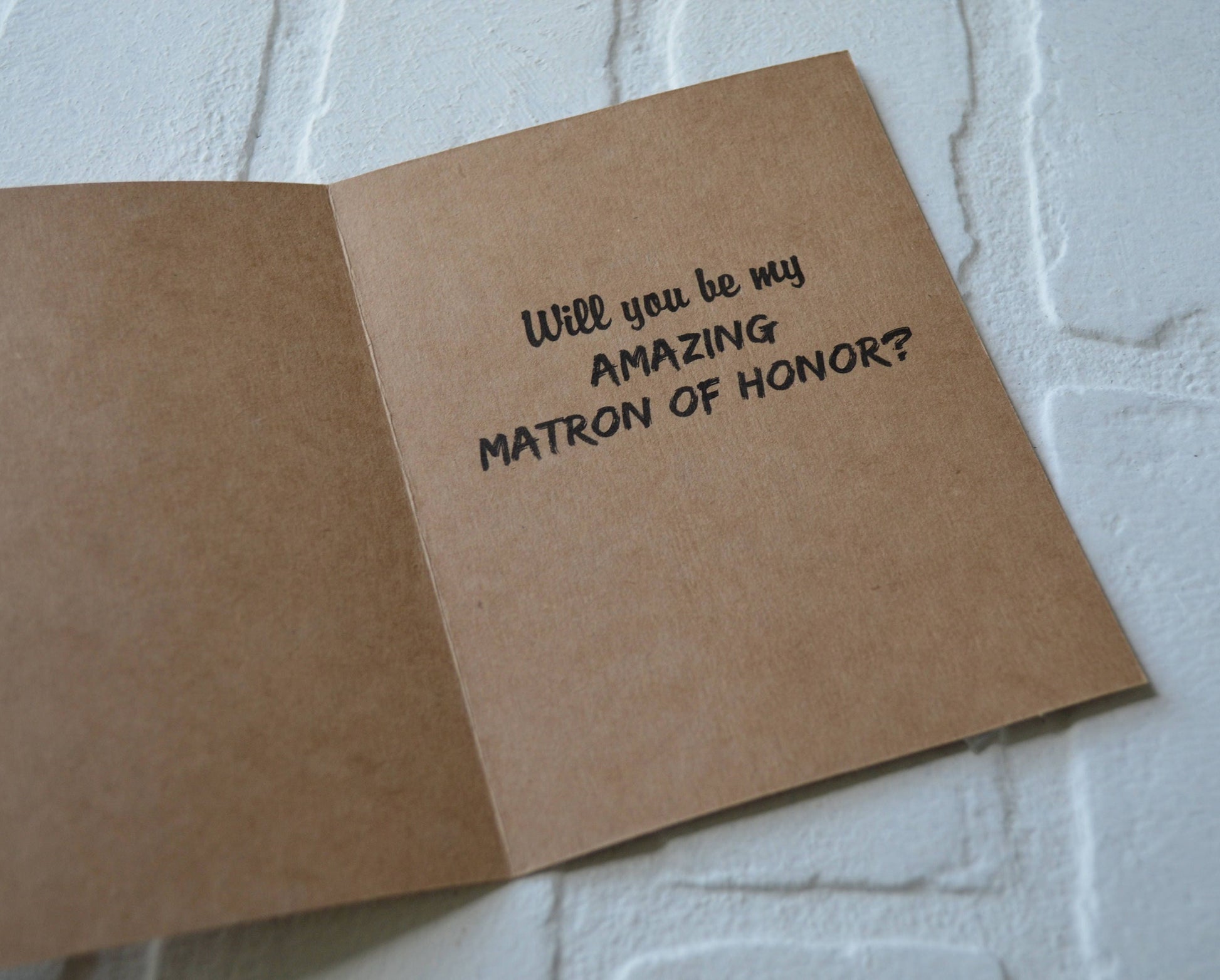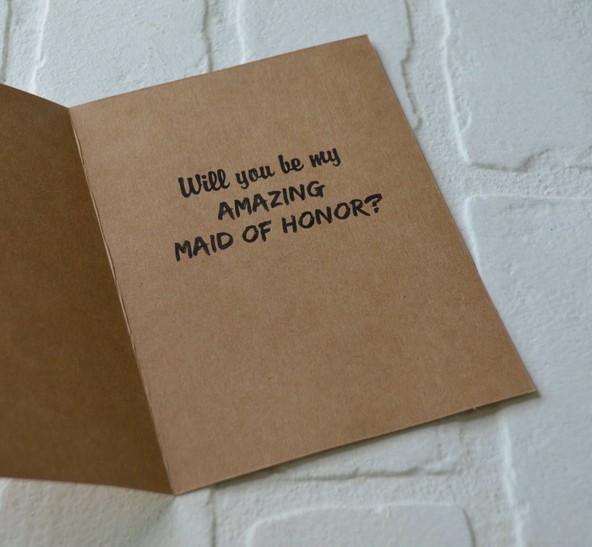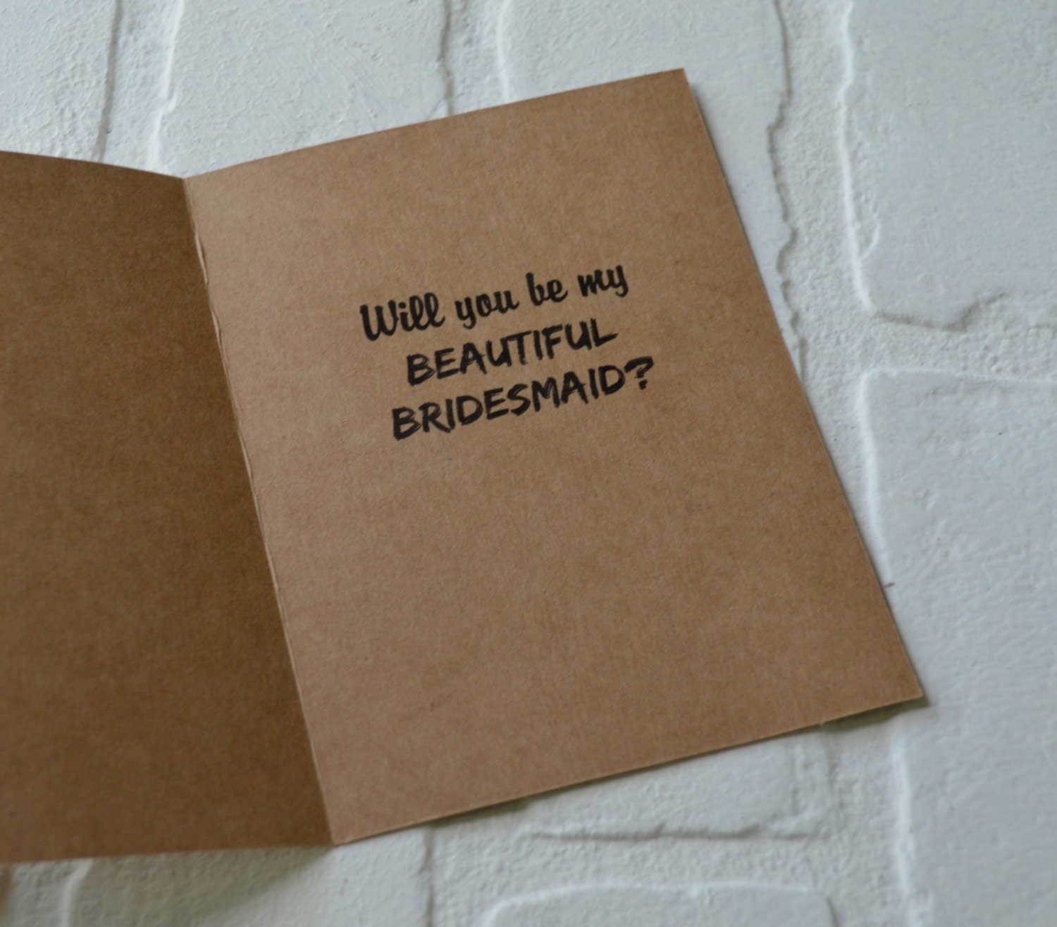 (Inside) "Will you be my (BEAUTIFUL BRIDESMAID, AMAZING MAID OF HONOR OR AMAZING MATRON OF HONOR)?"