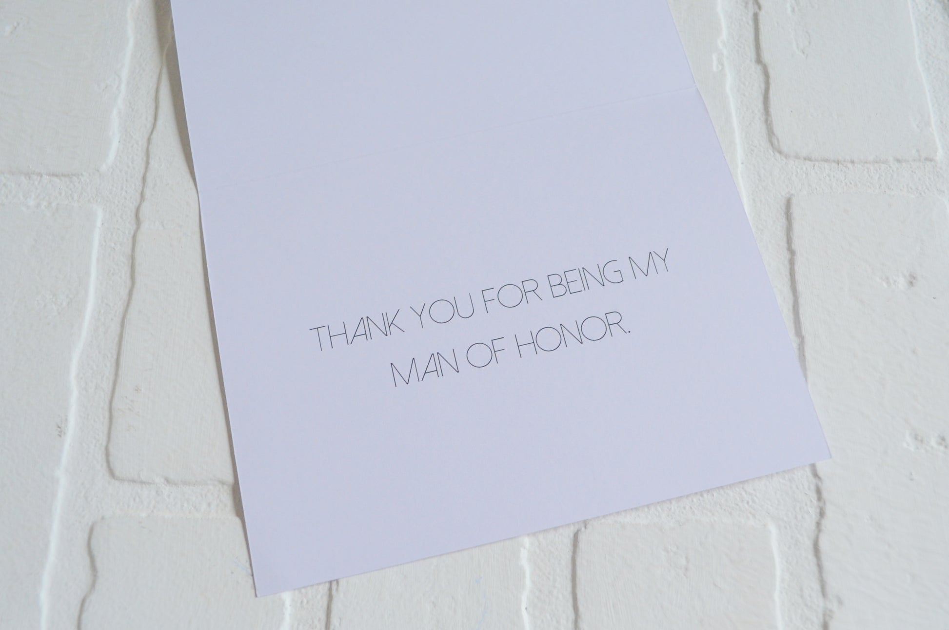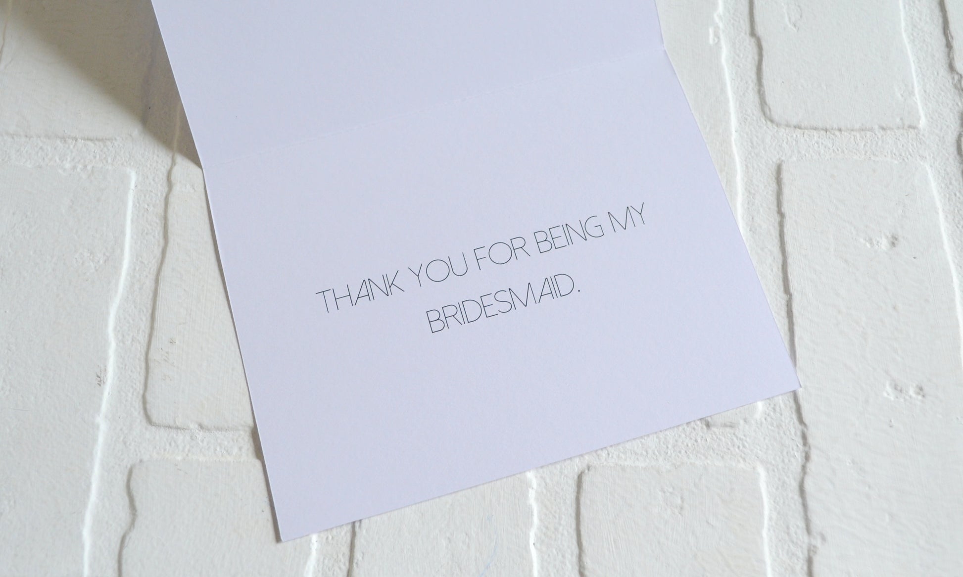 (Inside) Thank you for being my (best man, groomsman, junior groomsman, ring bearer, our usher, bridesmaid, maid of honor, matron of honor, junior bridesmaid, flower girl, man of honor, bridesman, personal attendant, photographer, event planner, wedding planner OR officiant).
