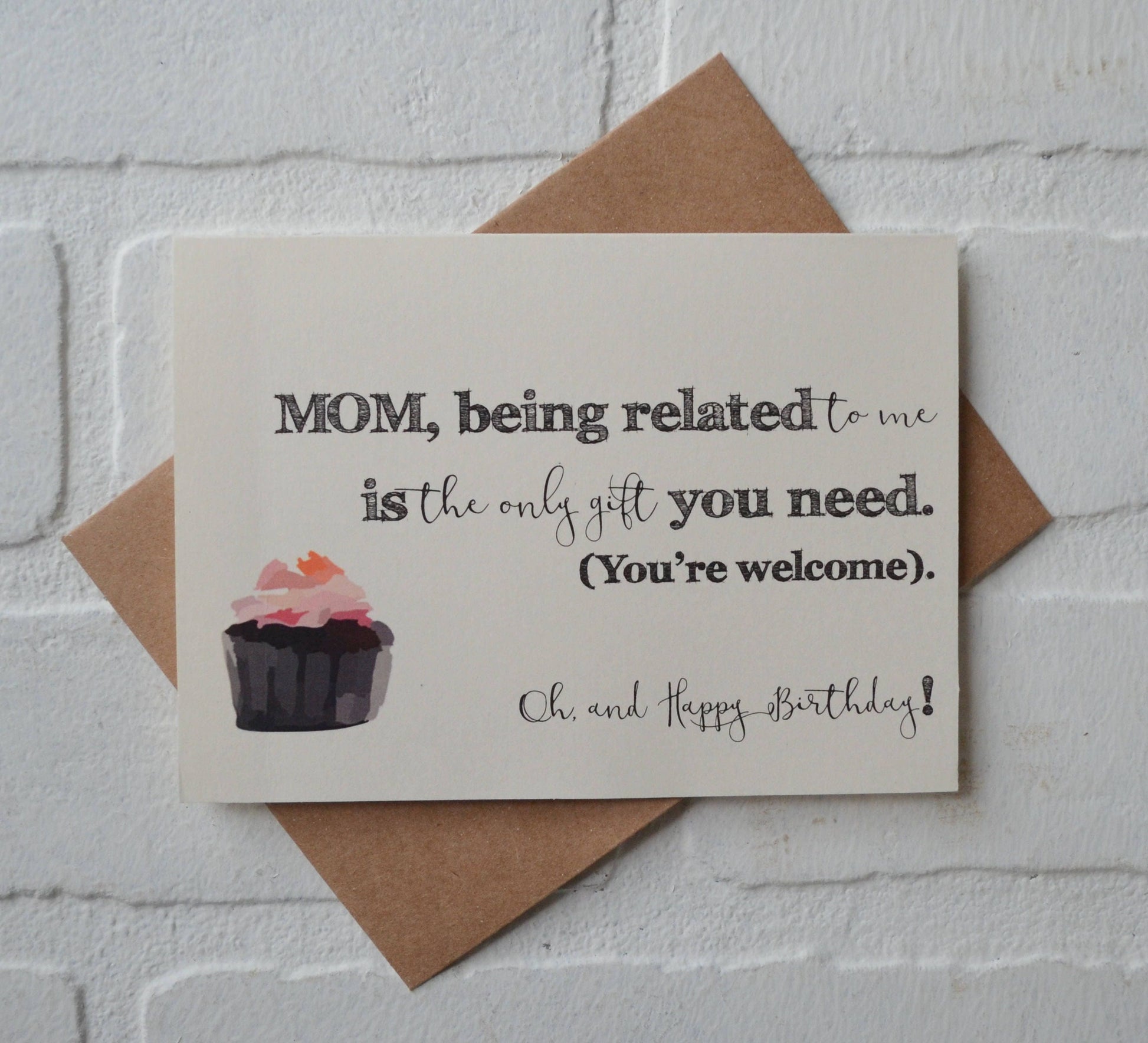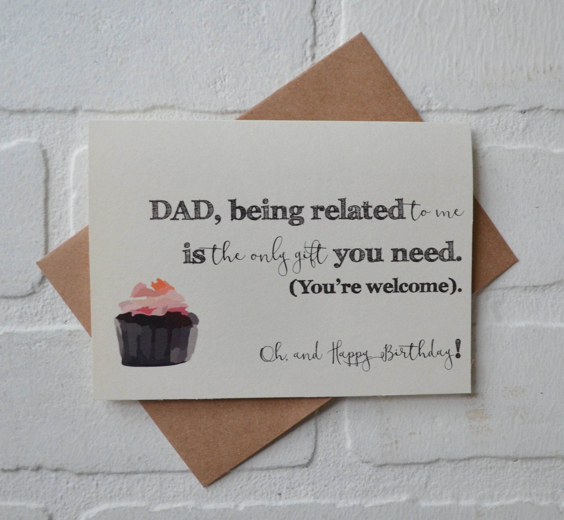 (Outside) "MOM or DAD, being related to me is the only gift you need. (You’re welcome). Oh, and Happy Birthday!!"