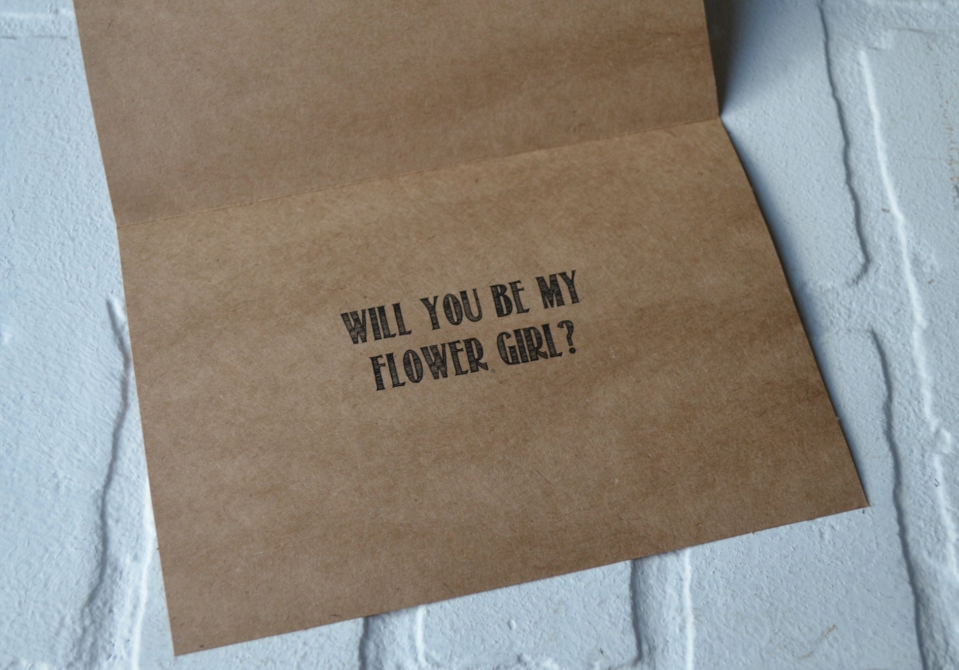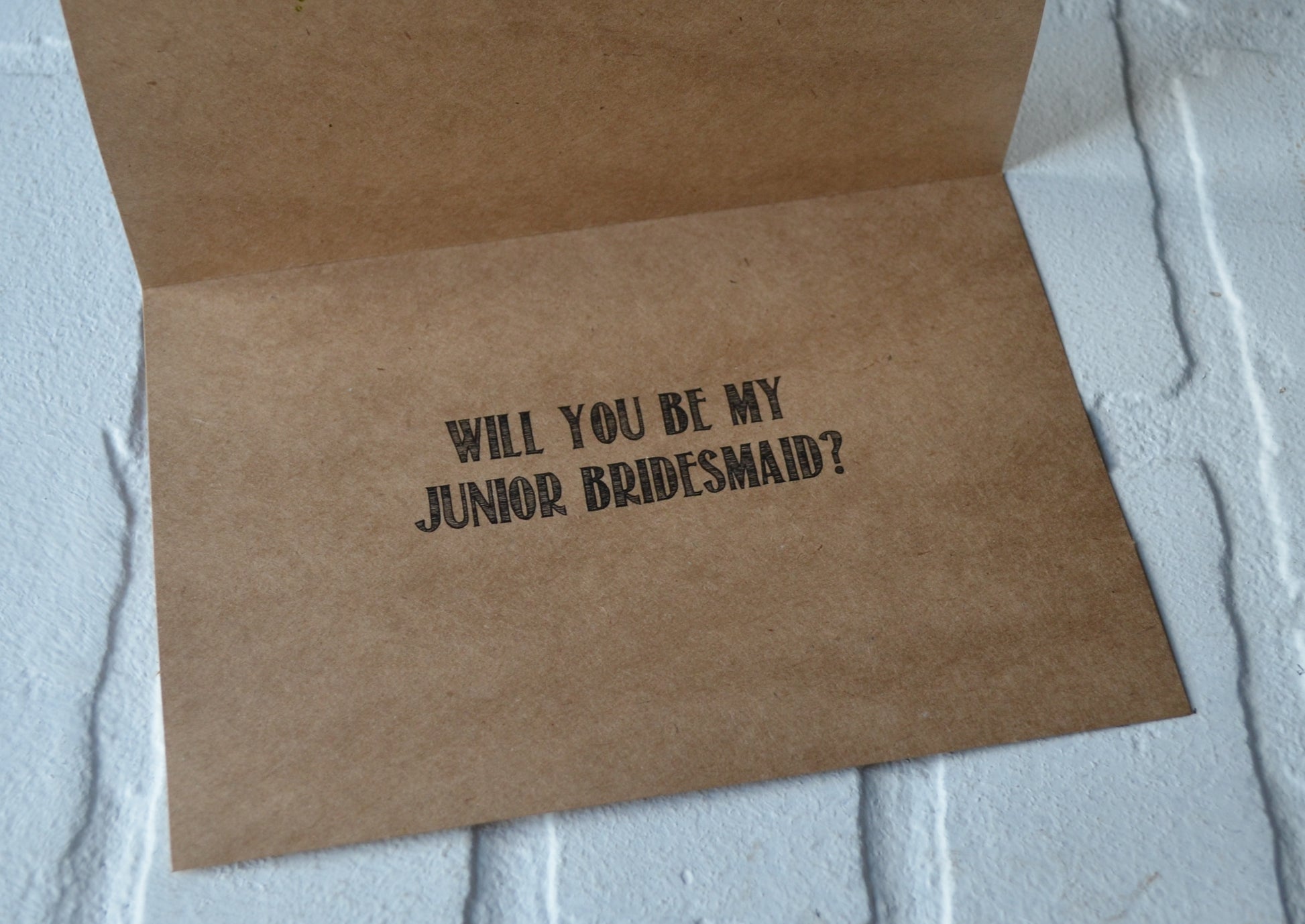 (Inside): "will you be my (maid of honor, matron of honor, bridesmaid, junior bridesmaid OR personal attendant)?"