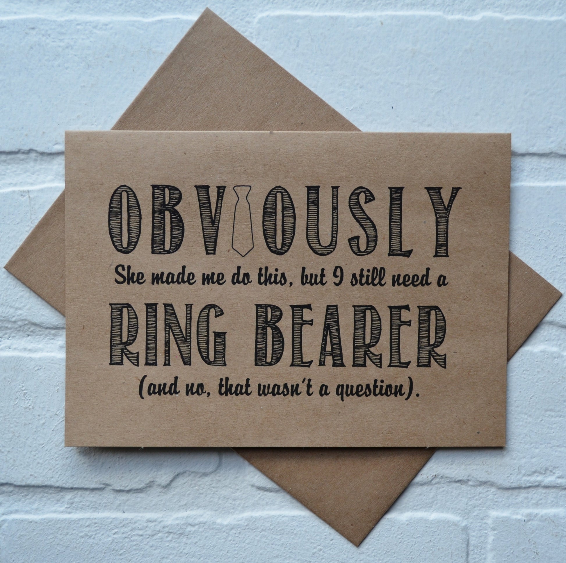 (Outside) "OBVIOUSLY She made me do this, but I still need a... (GROOMSMAN, BEST MAN, JUNIOR GROOMSMAN, RING BEARER OR OUR USHER) (and no, that wasn’t a question)."