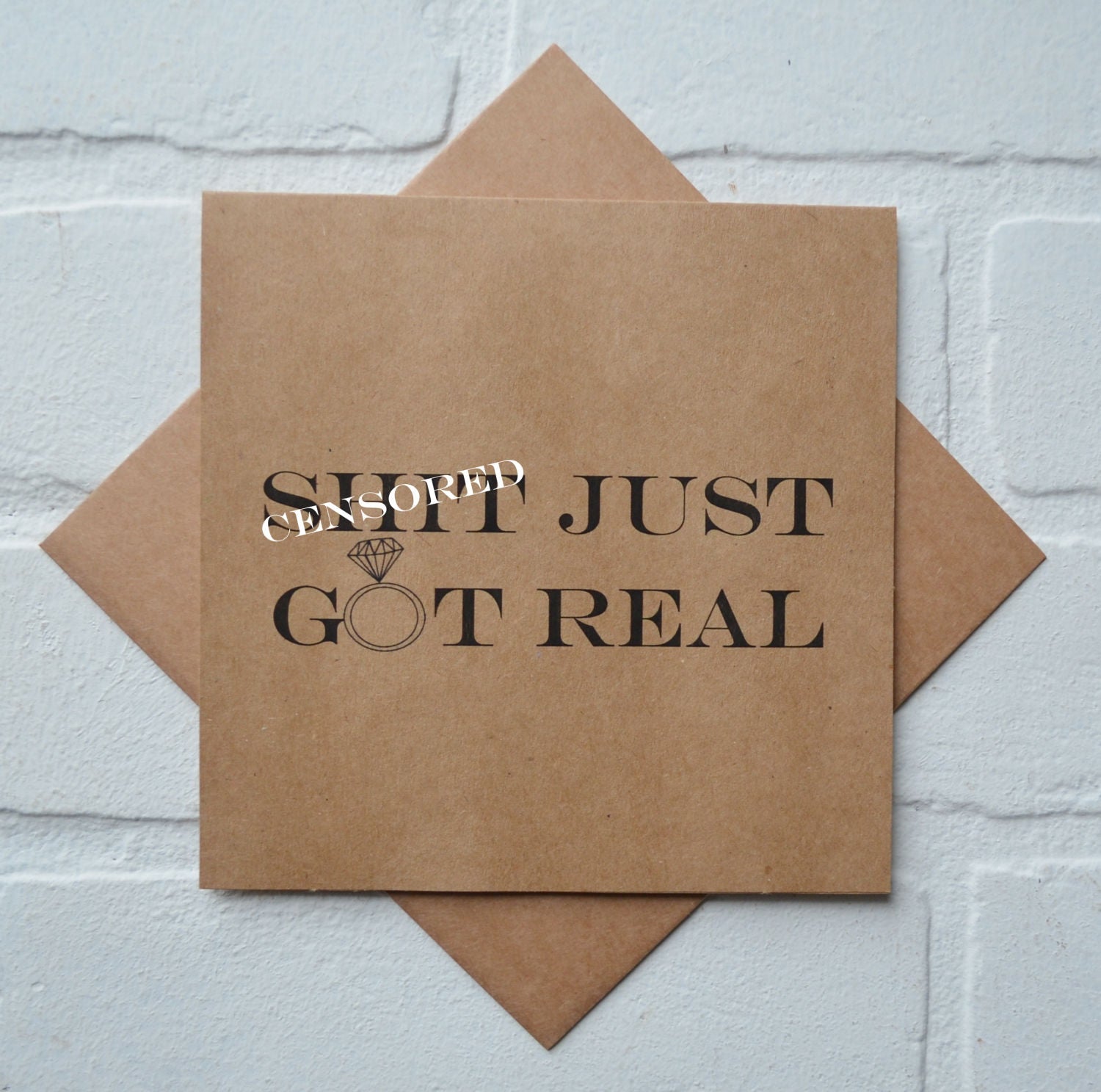 Sh*t just got real engagement card | wedding card | congratulations on your engagement | funny engagement kraft card congrats shit got real