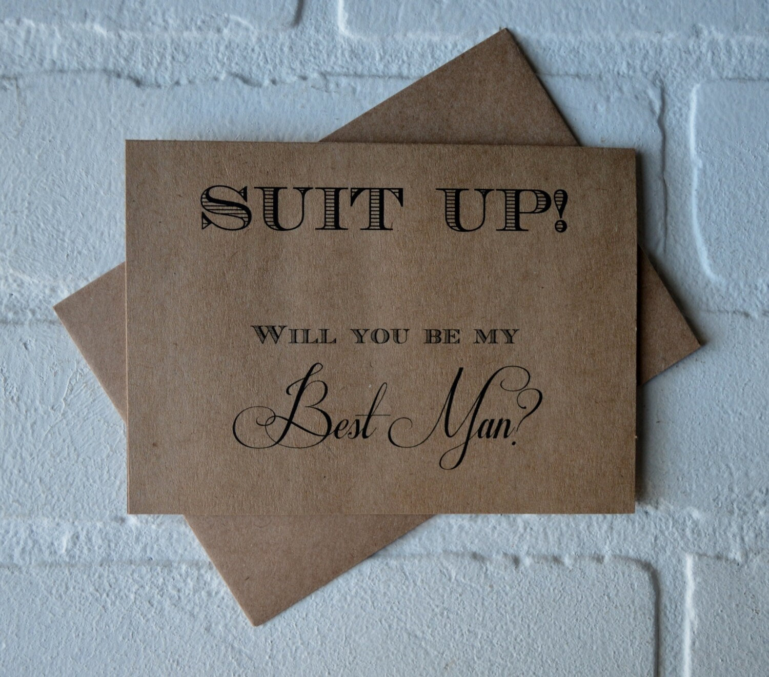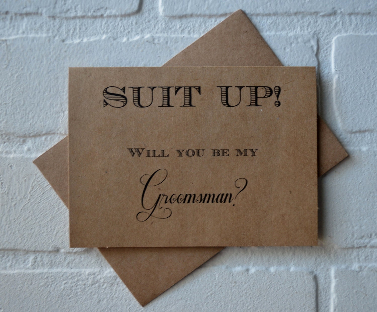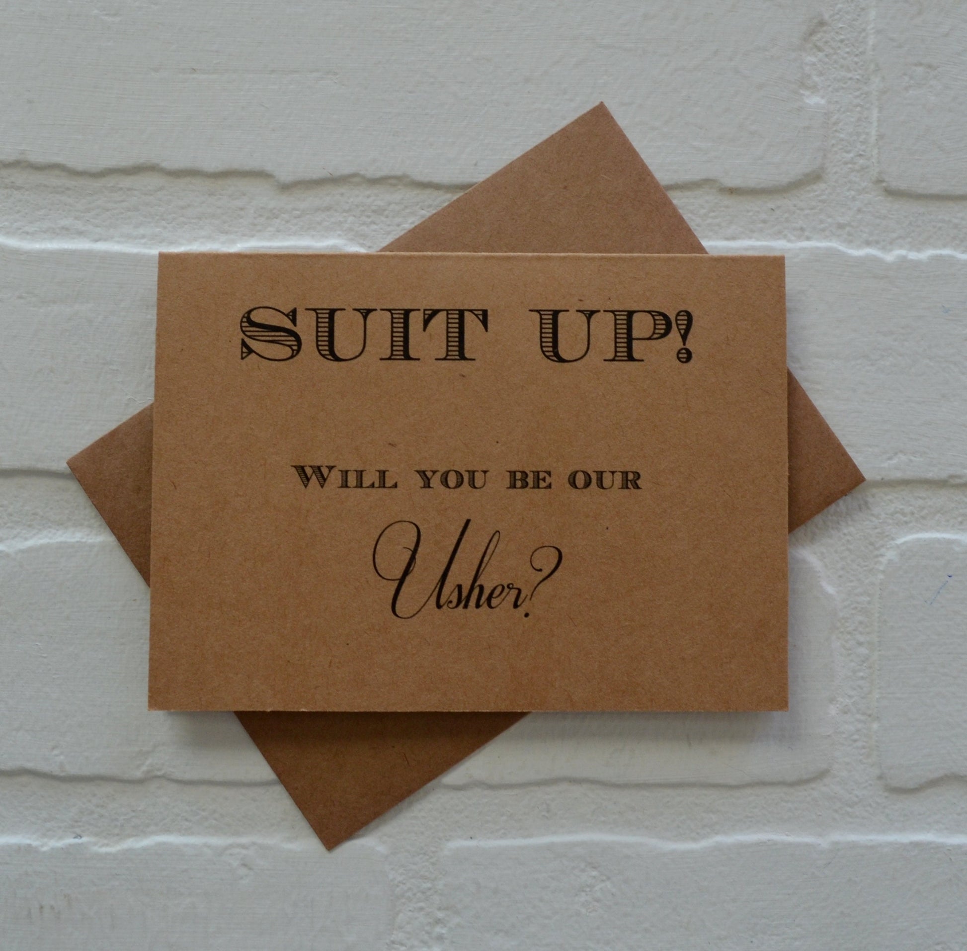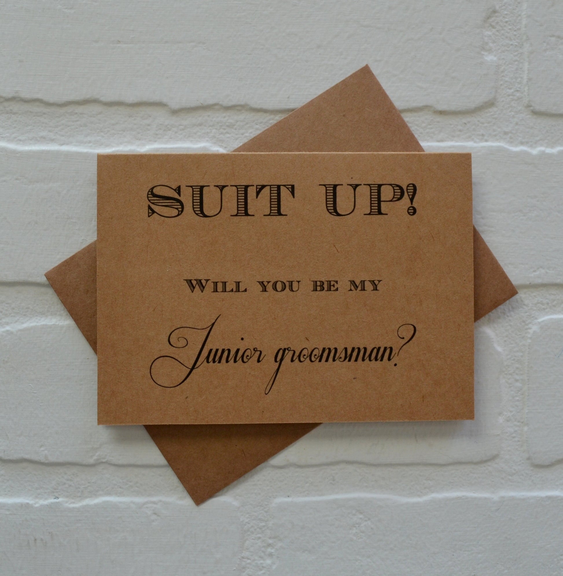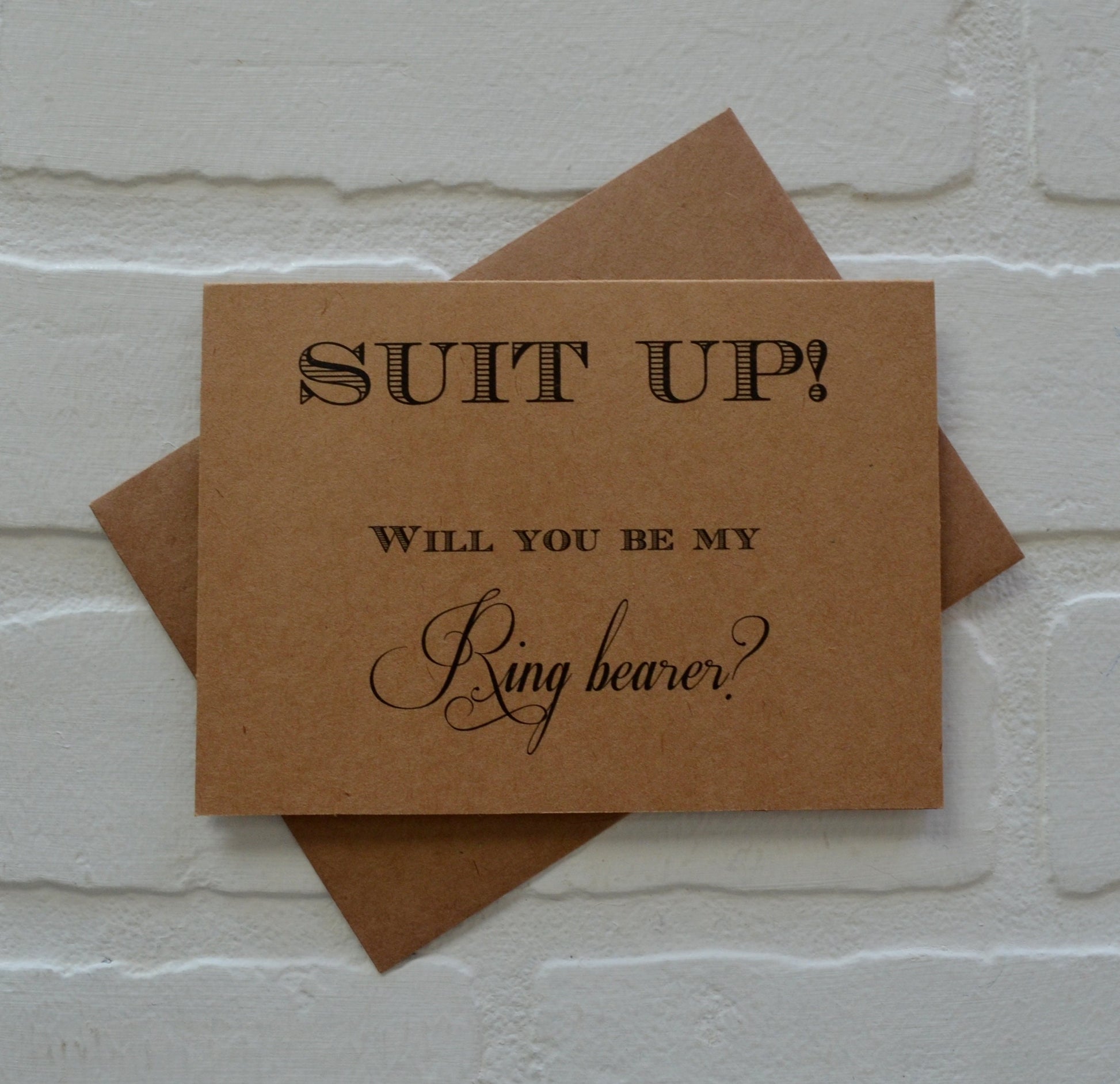 (Outside): "Suit Up Will you be my...(GROOMSMAN, BEST MAN, JUNIOR GROOMSMAN, RING BEARER OR OUR USHER)?"