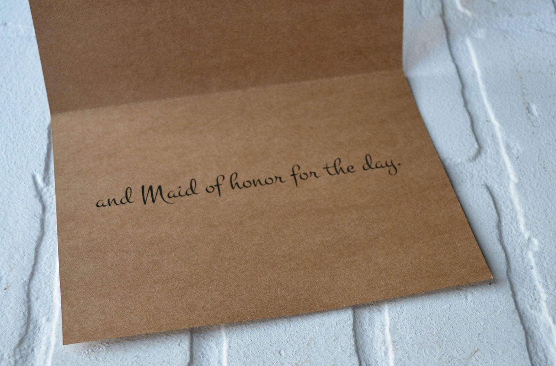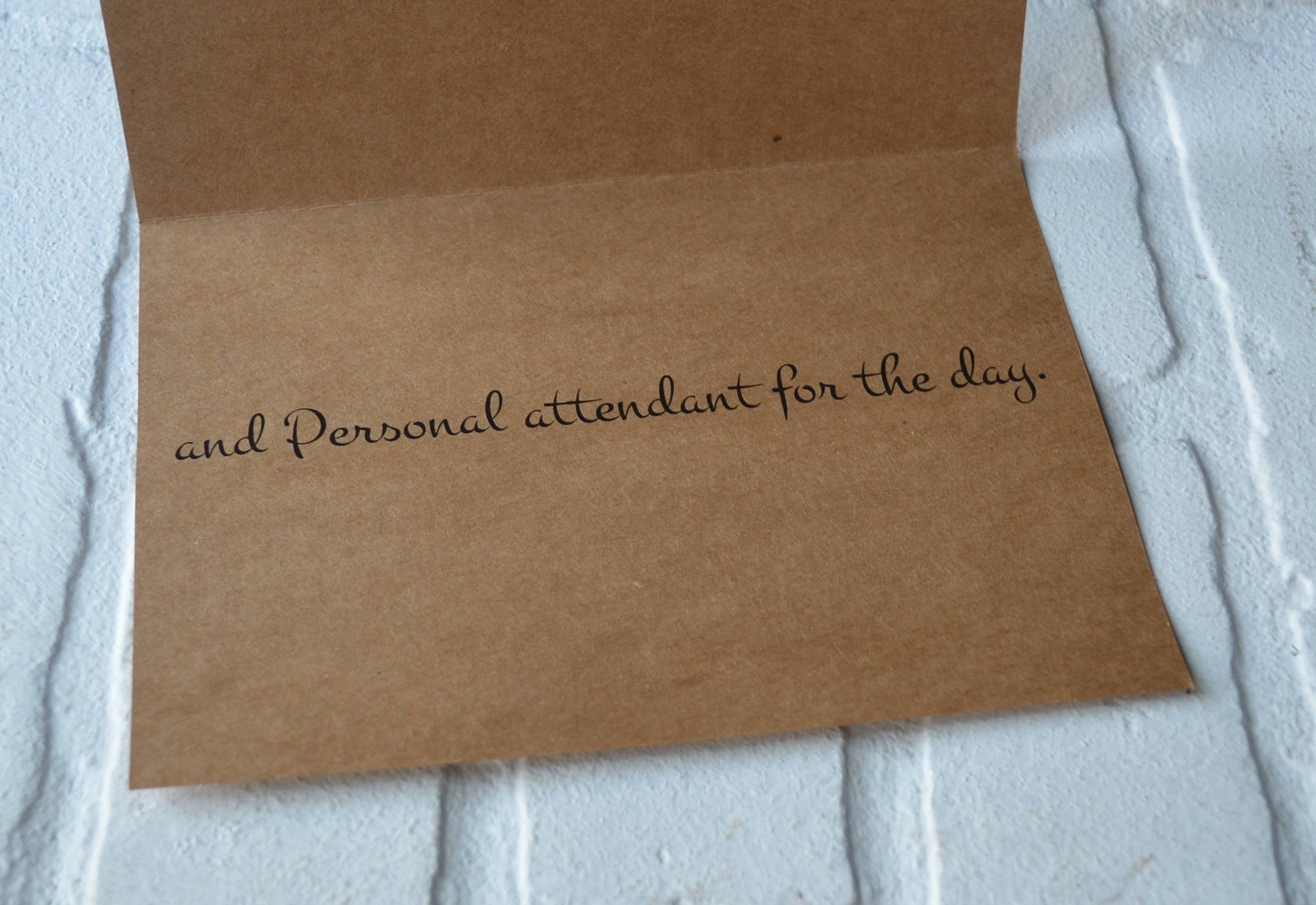Inside: and (Bridesmaid, Maid of honor, Matron of honor, Junior bridesmaid, Flower girl or Personal attendant) for a day.
