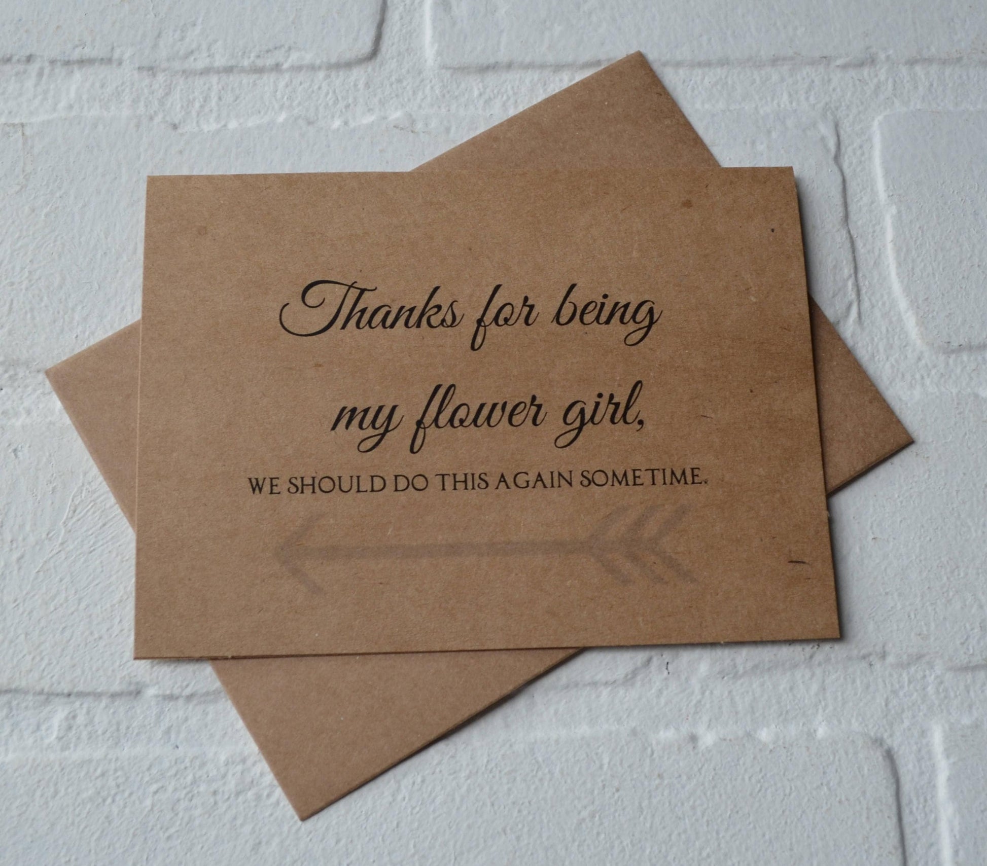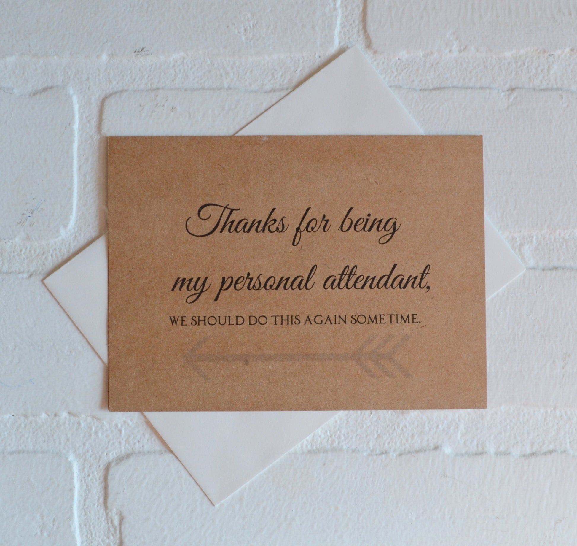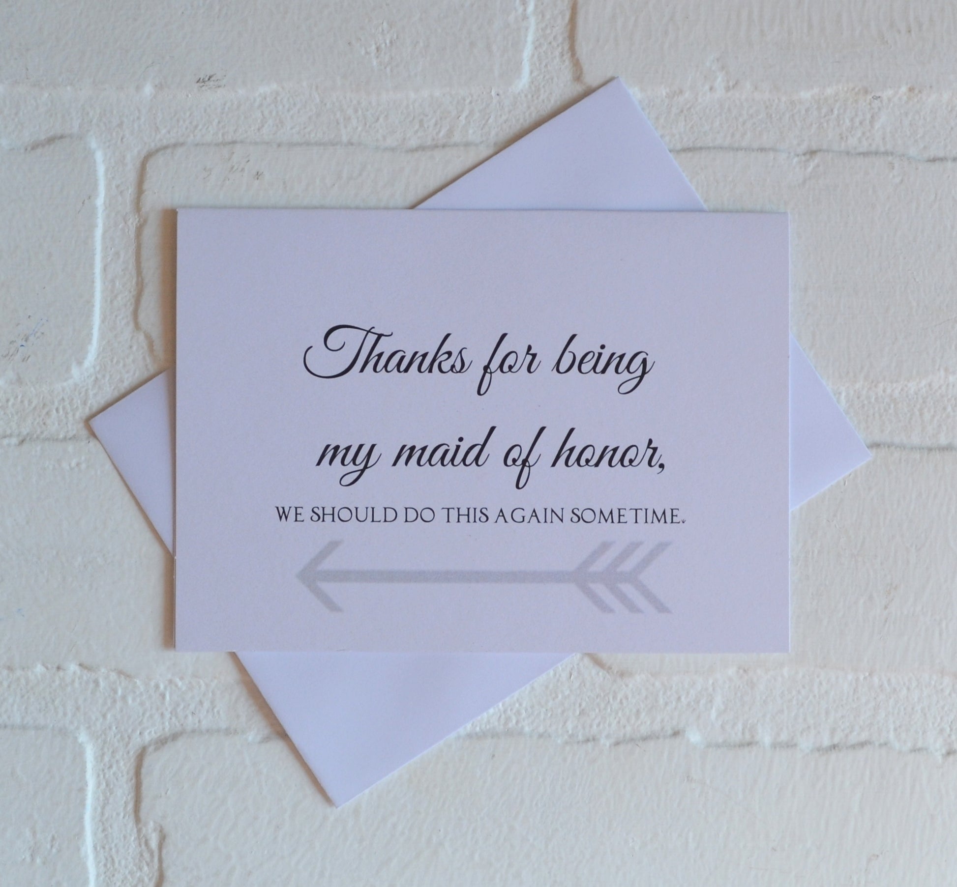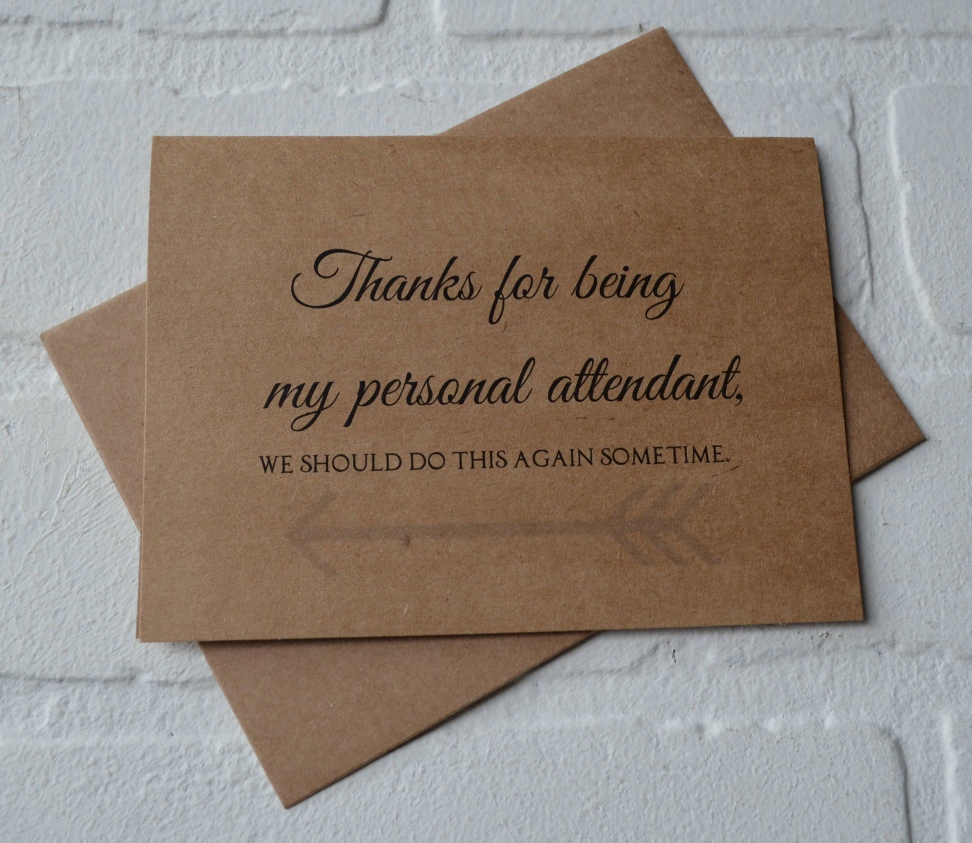 (Outside) "Thanks for being my (bridesmaid, maid of honor, matron of honor, junior bridesmaid, flower girl, bridesman, man of honor OR personal attendant), we should do this again sometime."
