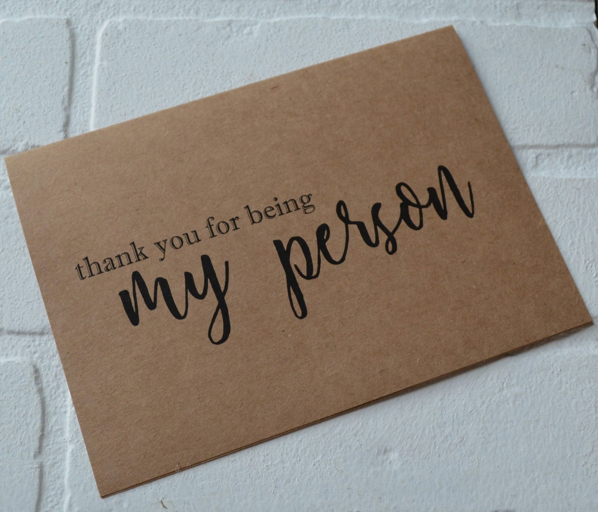 THANK YOU for being my PERSON wedding bridal party thank you cards