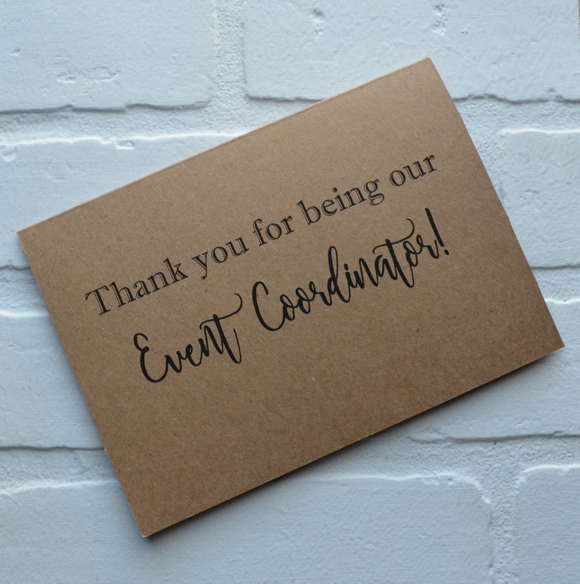 Simple and sweet card to thank that someone special who was your event coordinator. Printed on *kraft style cardstock including envelope.