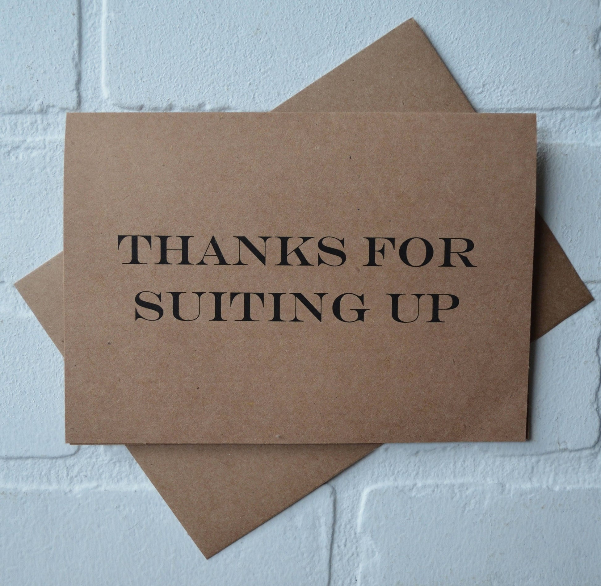 Outside: "THANKS FOR SUITING UP"