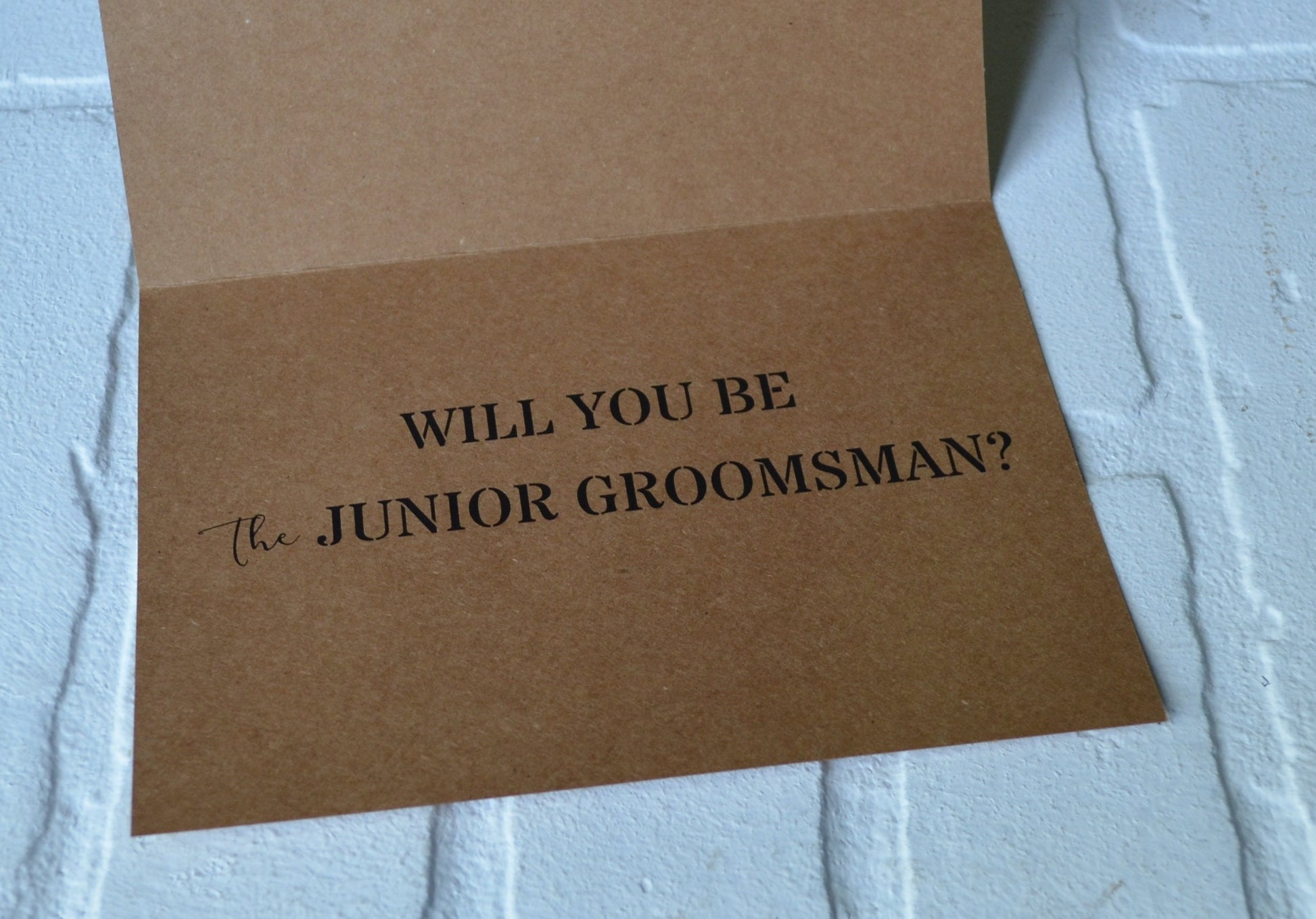 Inside: "WILL YOU BE MY (The GROOMSMAN, The BEST MAN, The JUNIOR GROOMSMAN, The RING BEARER, The USHER)?"
