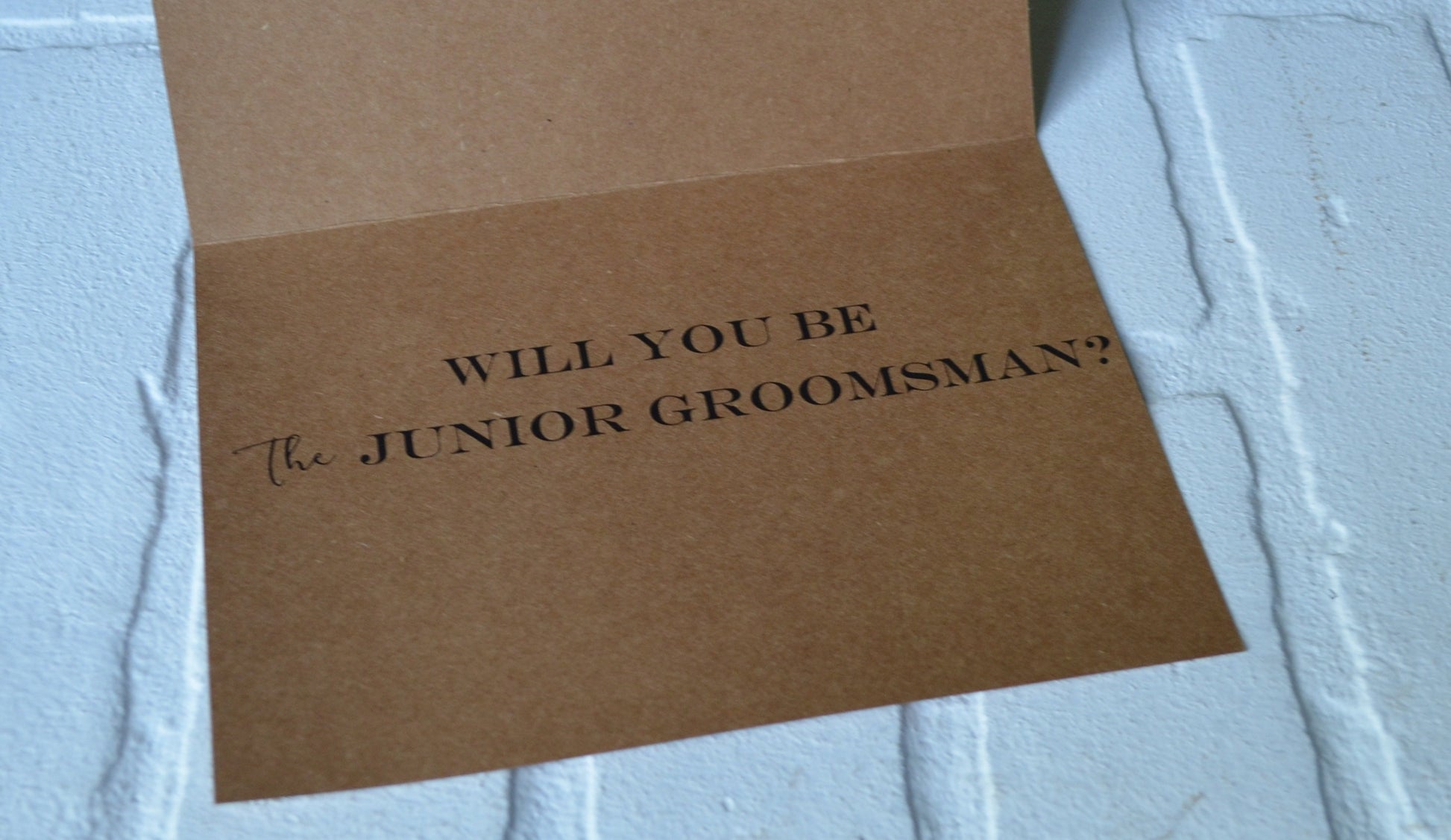 Inside: "WILL YOU BE MY (The GROOMSMAN, The BEST MAN, The USHER, The JUNIOR GROOMSMAN OR The RING BEARER )?"