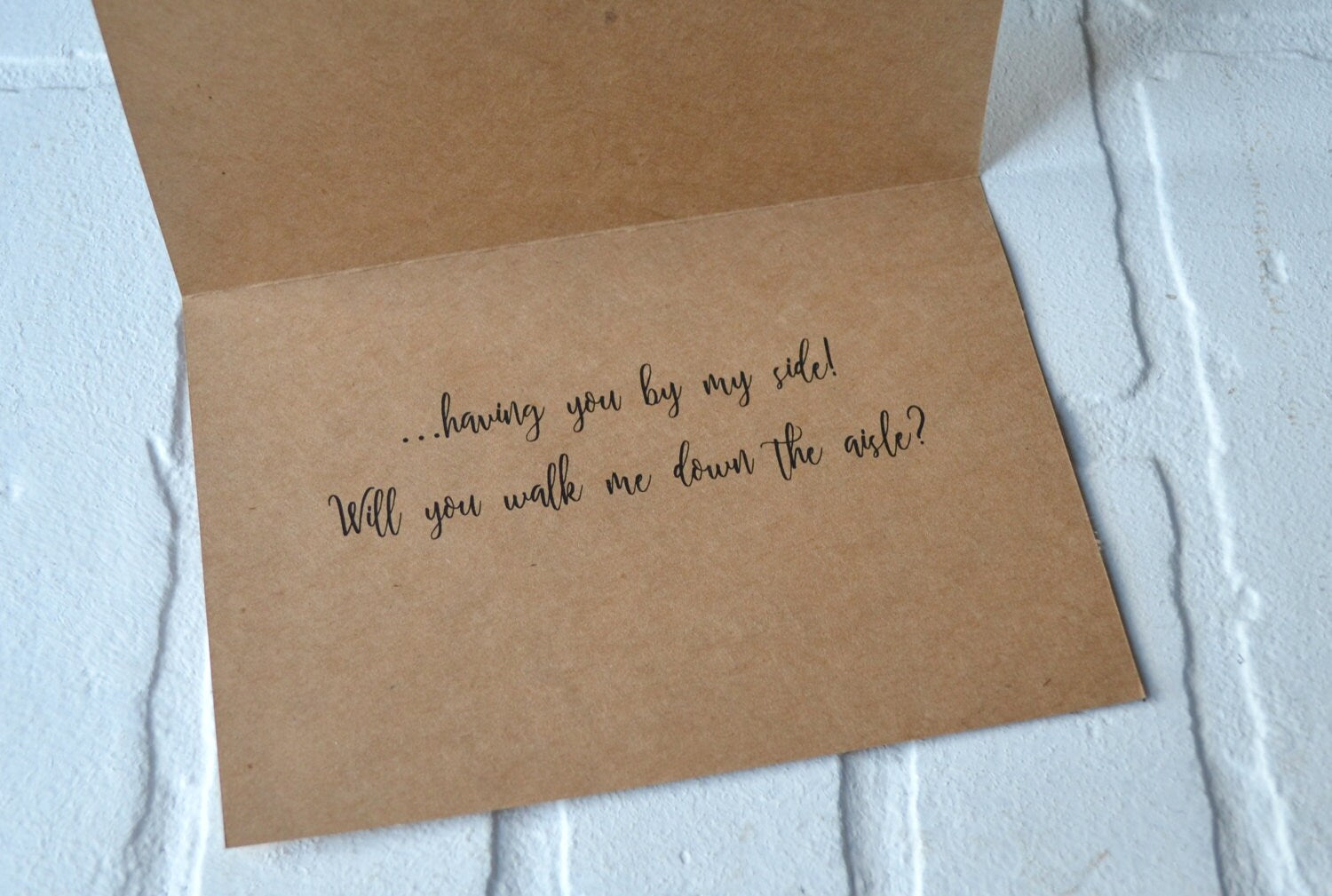 Your Father has been there through it all, now on the most important day you need him again:)  This cute kraft wedding card is a perfect way to ask your Father to walk you down the aisle.  Ask you Dad to be a part of your wedding day with a bridal card that will mean so much.  Card is printed on *kraft cardstock and comes with matching envelope.