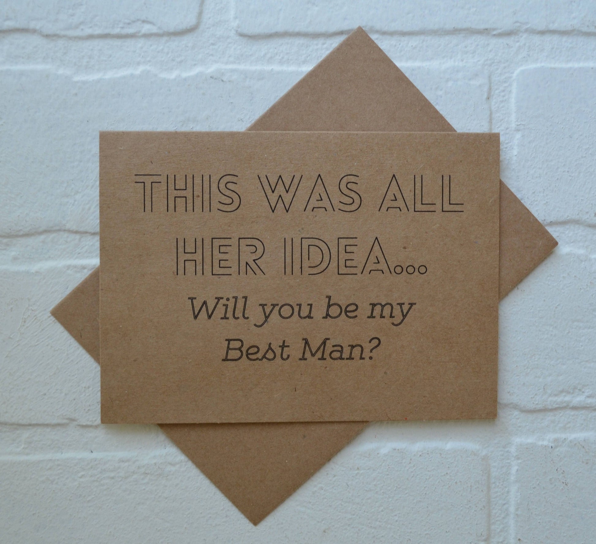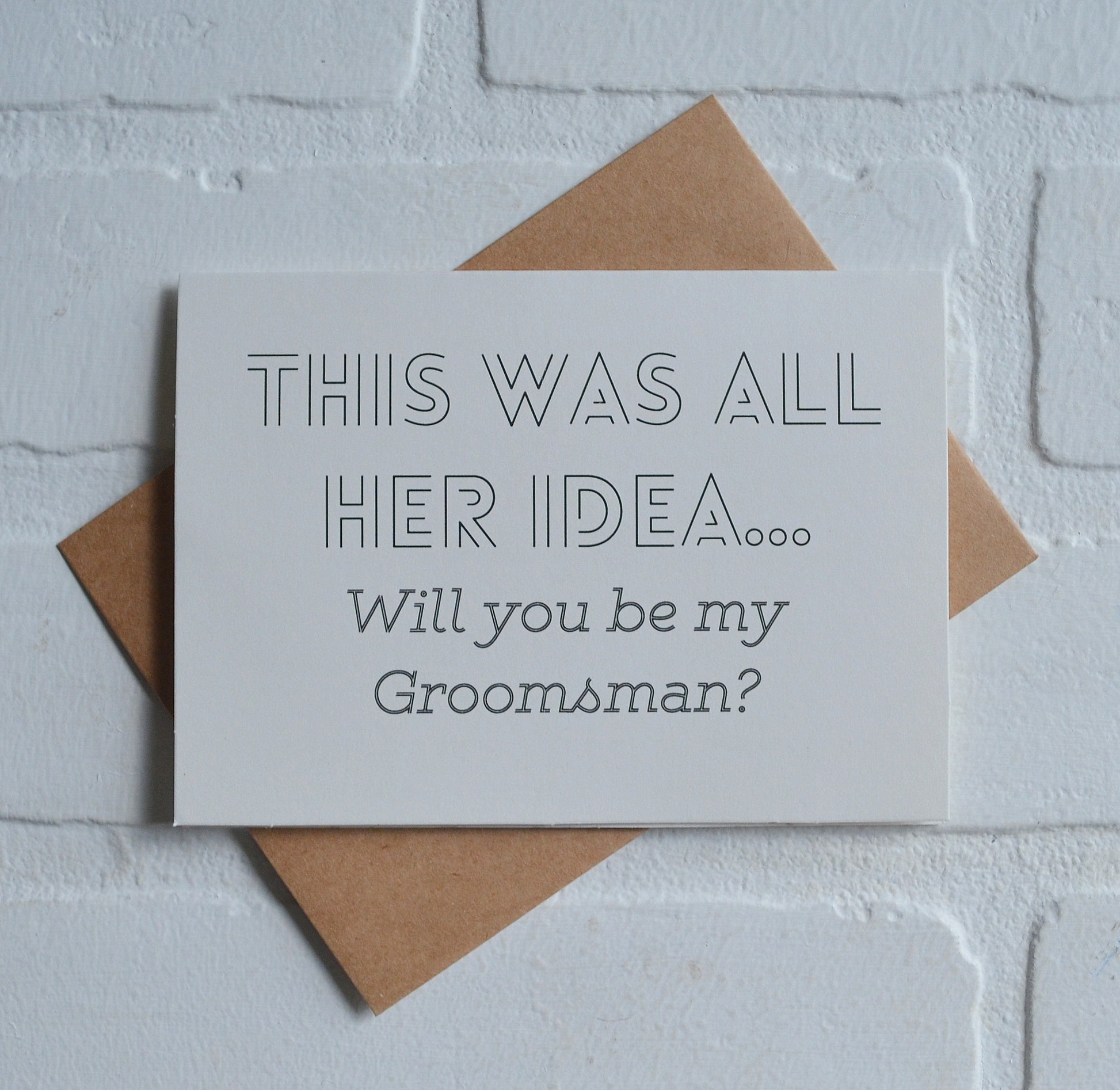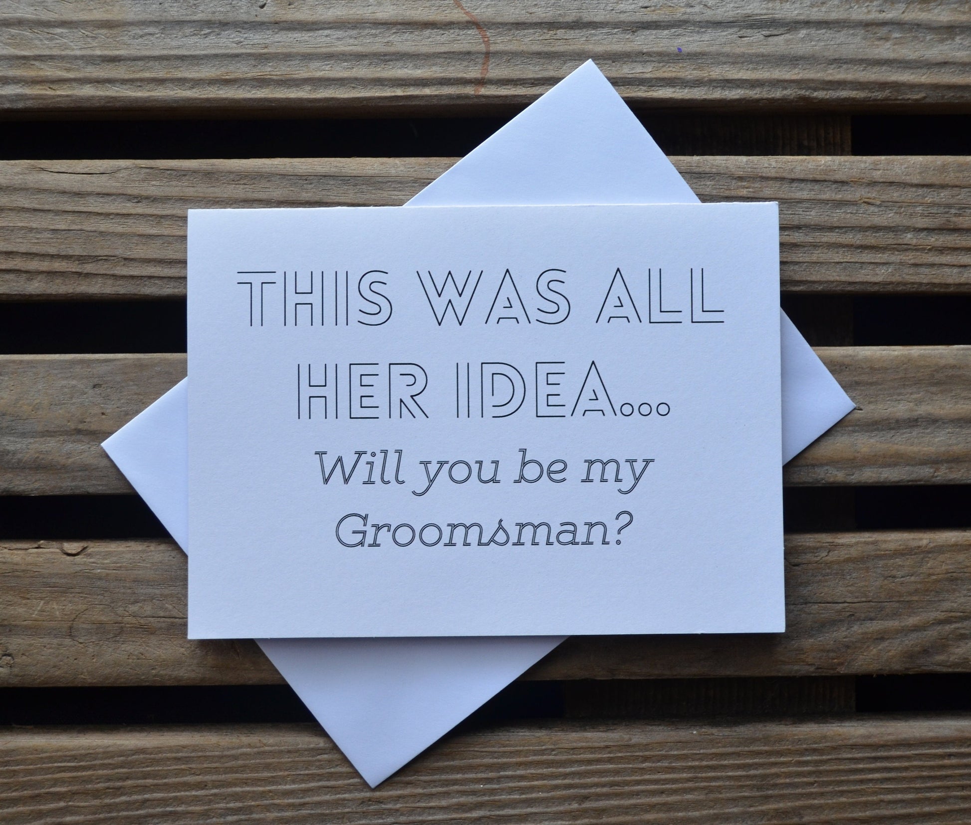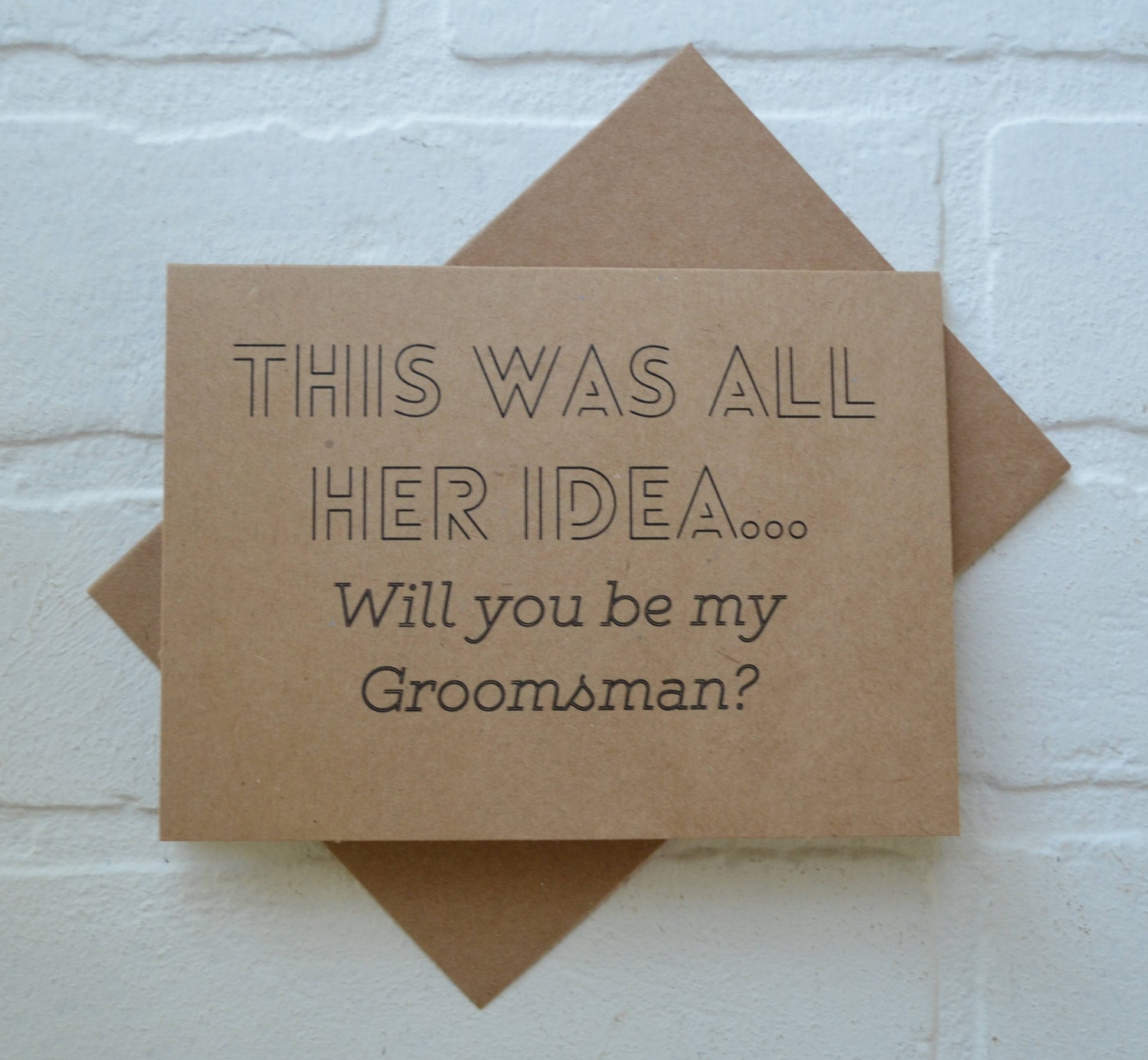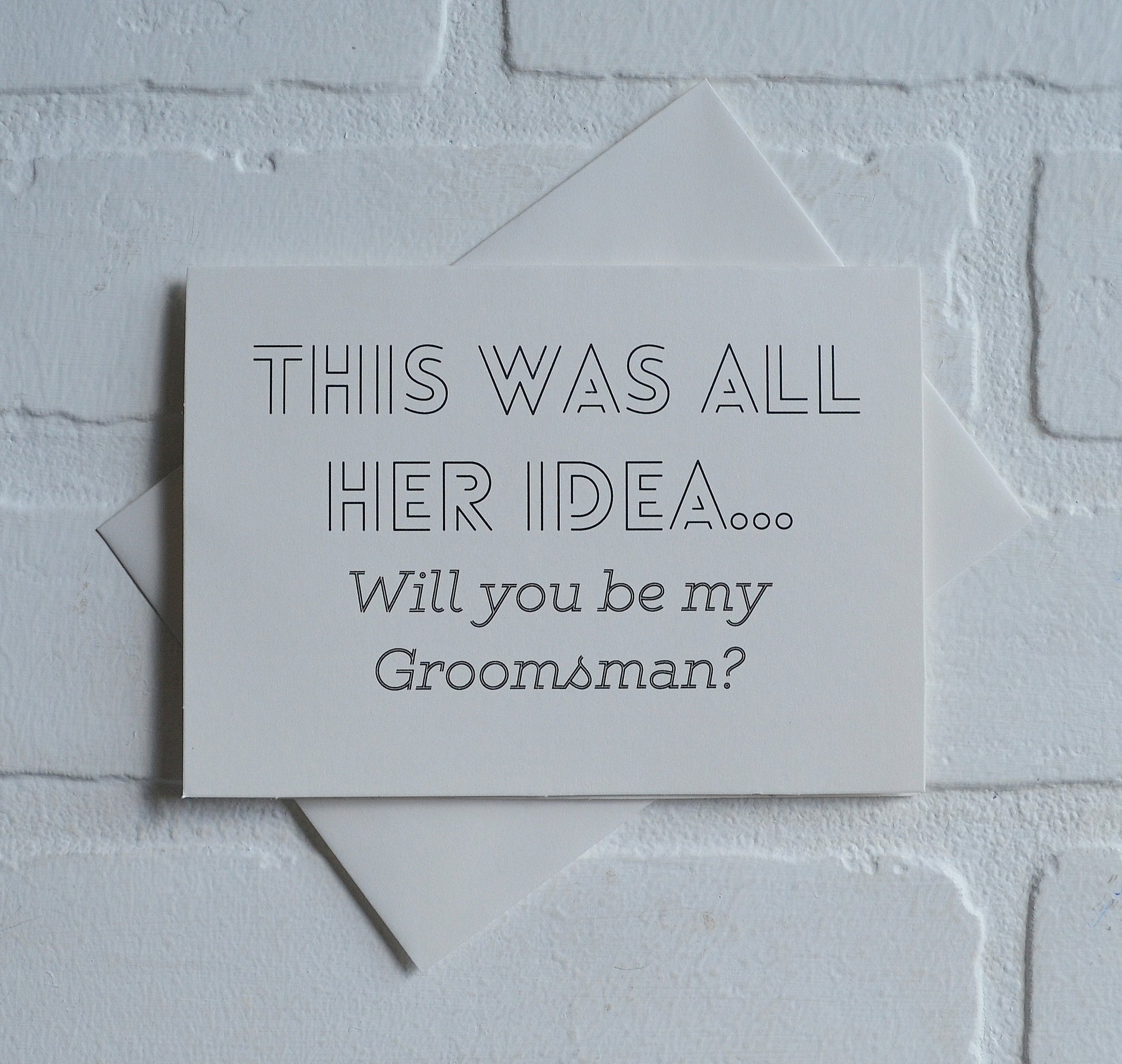 This was all her idea | groomsmen proposal cards | wedding party invite
