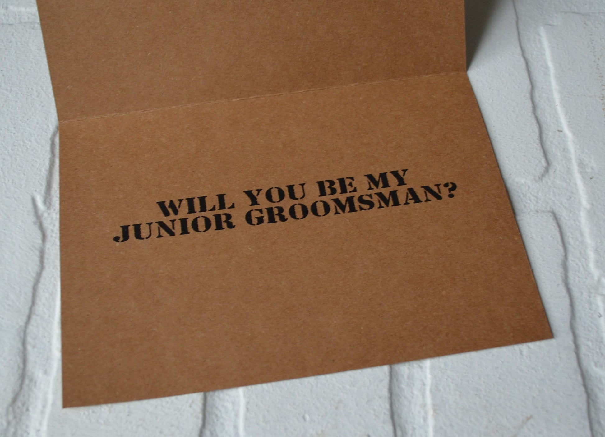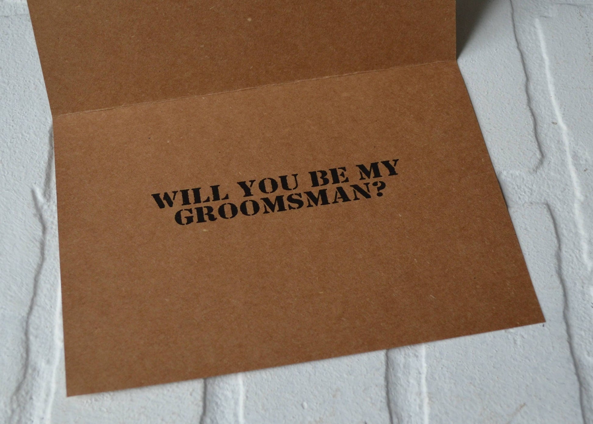 Inside: "WILL YOU BE MY....(GROOMSMAN, BEST MAN, JUNIOR GROOMSMAN, RING BEARER OR OUR USHER)?"