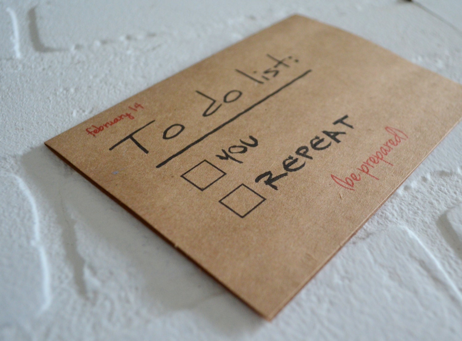 (Outside) February 14th "To do list: you repeat (be prepared)"