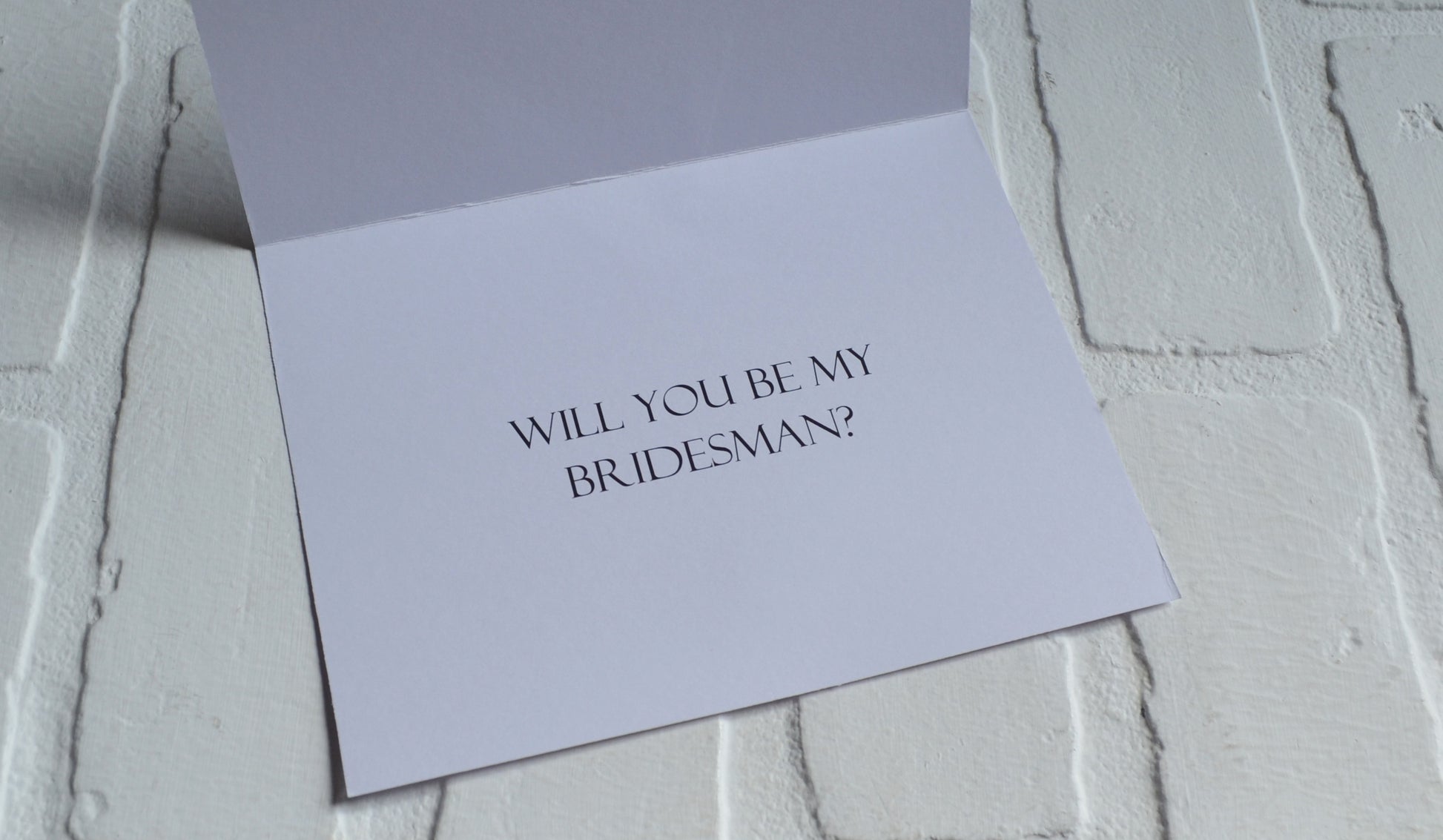 (Inside) "WILL YOU BE MY(BRIDESMAID, MAID OF HONOR, MATRON OF HONOR, JUNIOR BRIDESMAID, PERSONAL ATTENDANT OR FLOWER GIRL)?"