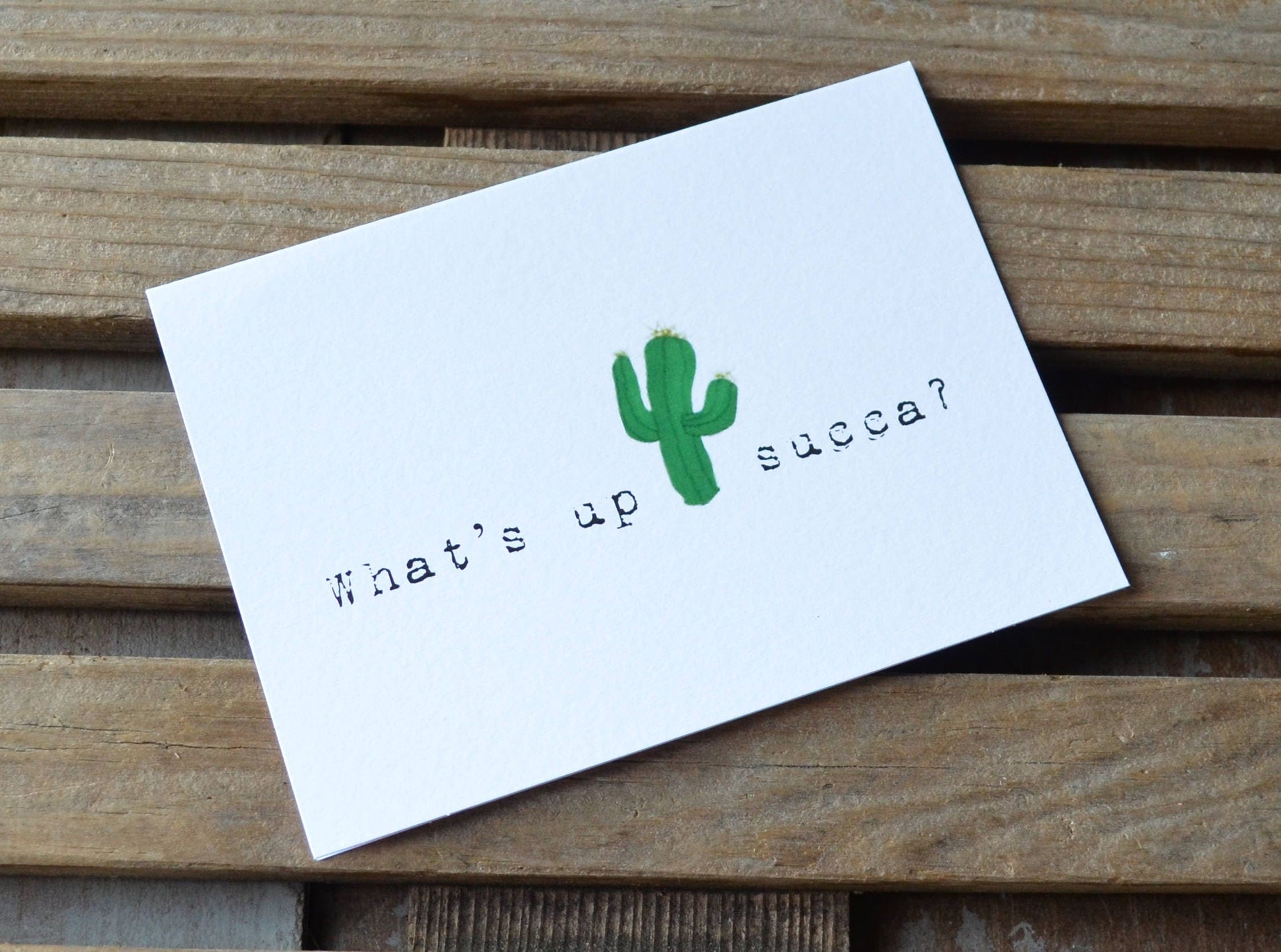 WHATS UP SUCCA greeting card | cactus gift | just because | saying hello | I miss you | friendship | funny stationary | note cards | freinds