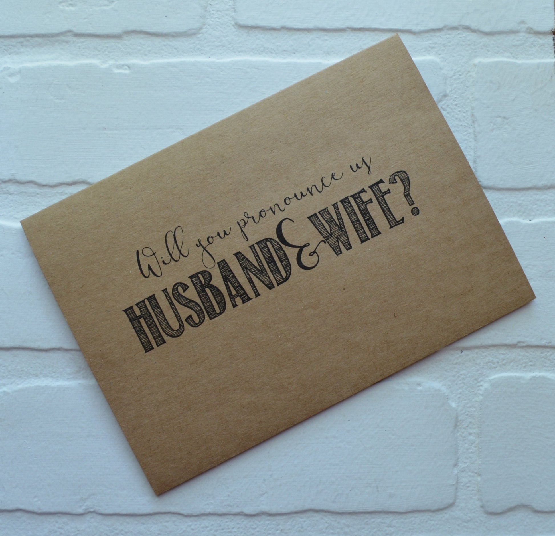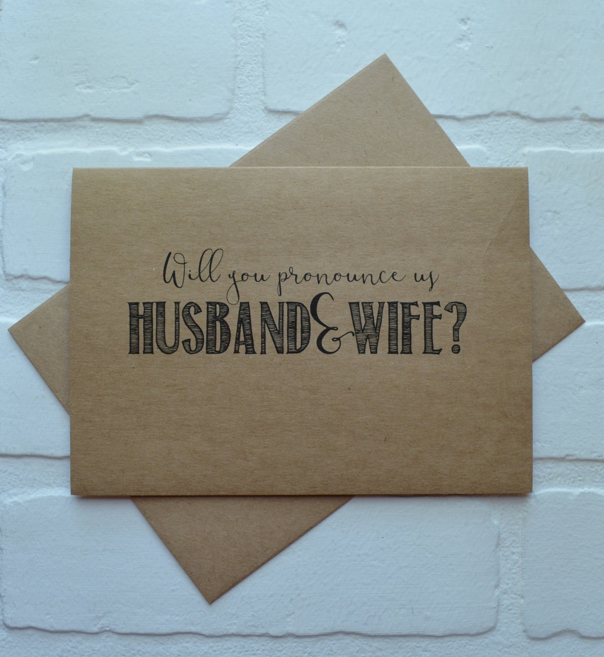 You're getting married and now you need someone to help make it official! Ask them to pronounce you husband and wife with this officiant card. Printed on *kraft style cardstock including envelope. If you're going to ask them, ask them in style!