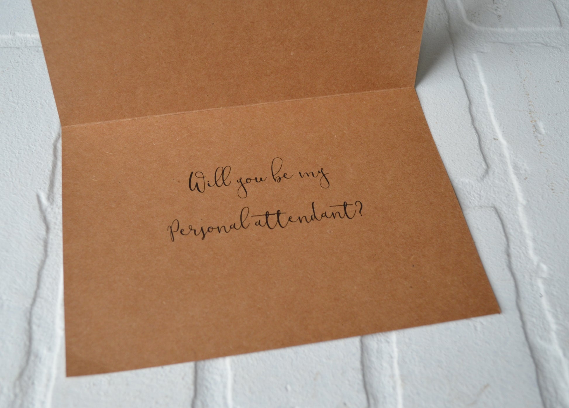 (Inside) "WILL YOU BE MY (Bridesmaid, Maid of honor, Matron of honor, Junior bridesmaid, Flower girl, Bridesman, Man of honor OR Personal attendant)?"